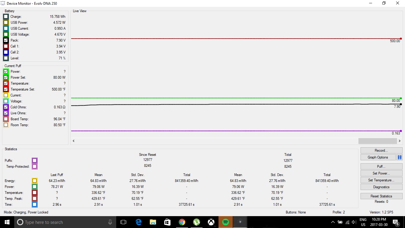 I keep getting wierd values when running in temp control on my mod. Sometimes it just goes straight to power by telling me off instead of a value or it will tell me something crazy like 41000f. Also it used to tell me wattage on screen instead of voltage but not its telling me voltage and there is a value even when not firing. Someone please help. I'm including photos in this post.
