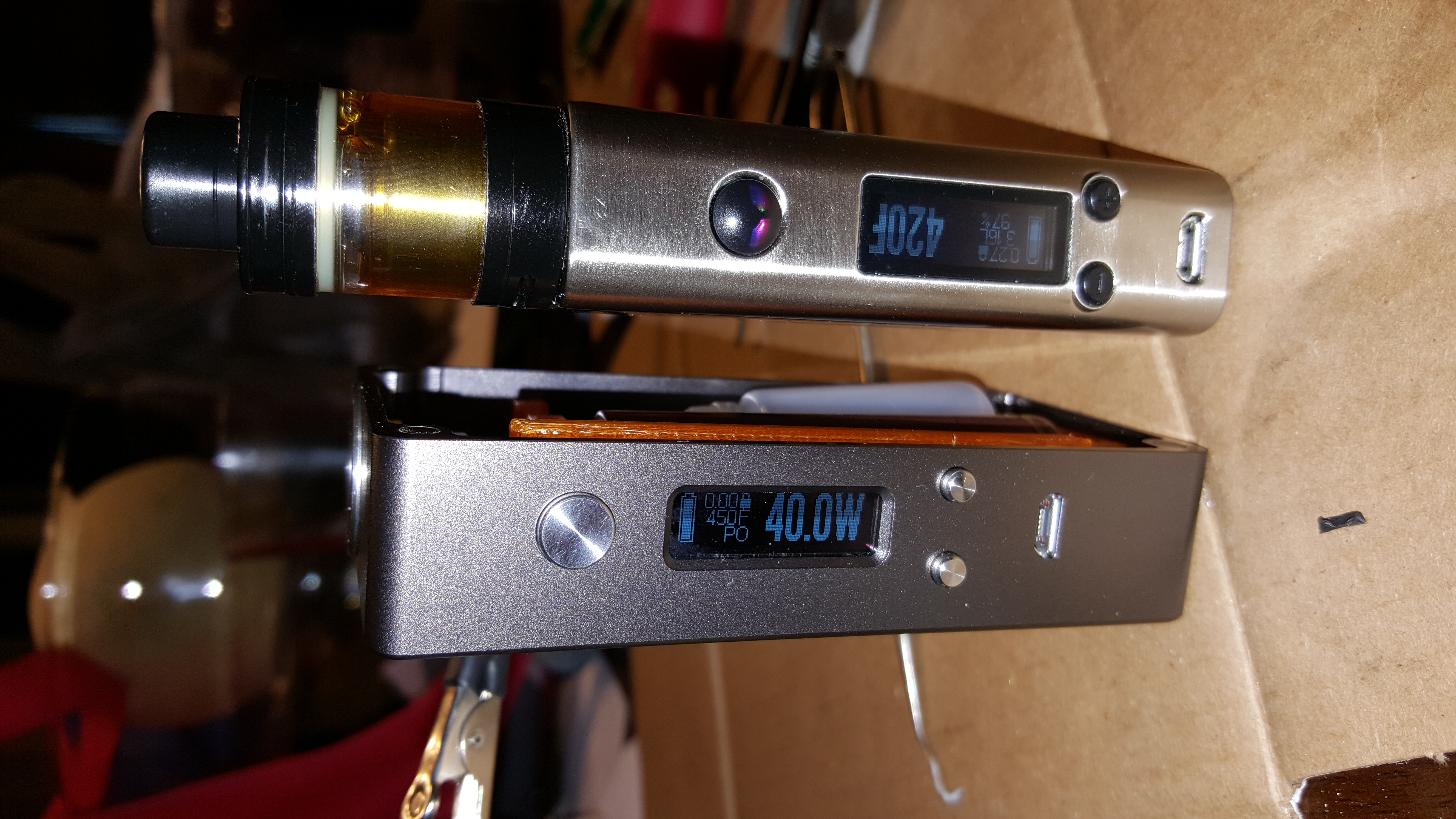 At work now but looking at the sdna screen on power mode no boost .3ohm @ 30watts the voltage meter is only showing 1.8volts before it cuts out with the weak battery warning. Isn't why we buy regulated devices is so we can vape at a constant voltage/wattage. Also if there's anyone out there that to trade me a dna60 board for ether of my 75 devices let me know. I still want to make on into a parallel, I haven't heard anyone complain of weak battery issues with the lost vapes therion.