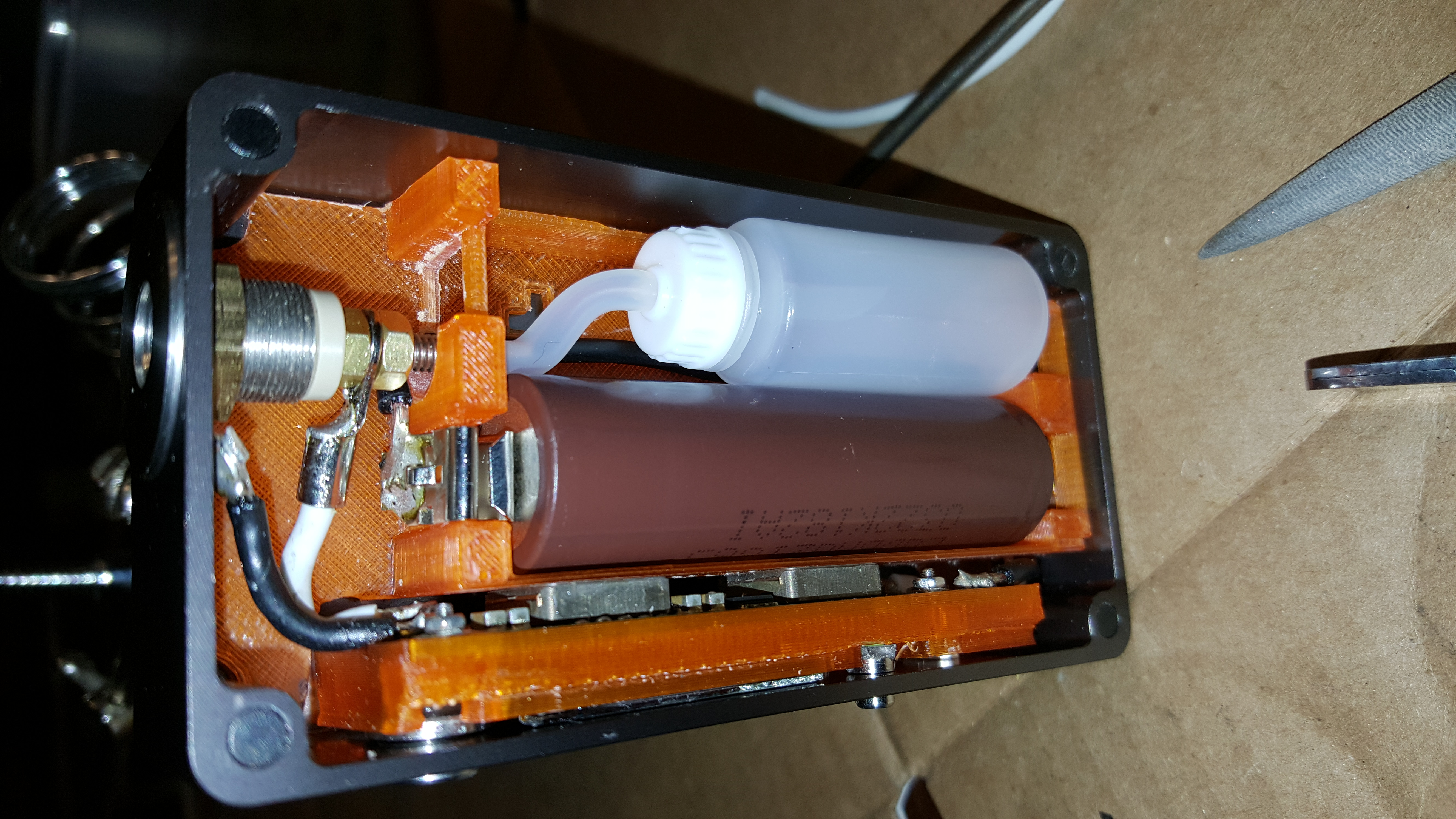 Still needs a little more work but almost done. This is my dna75 1590G+ squonk box. My board came out of the hcigar vt75
