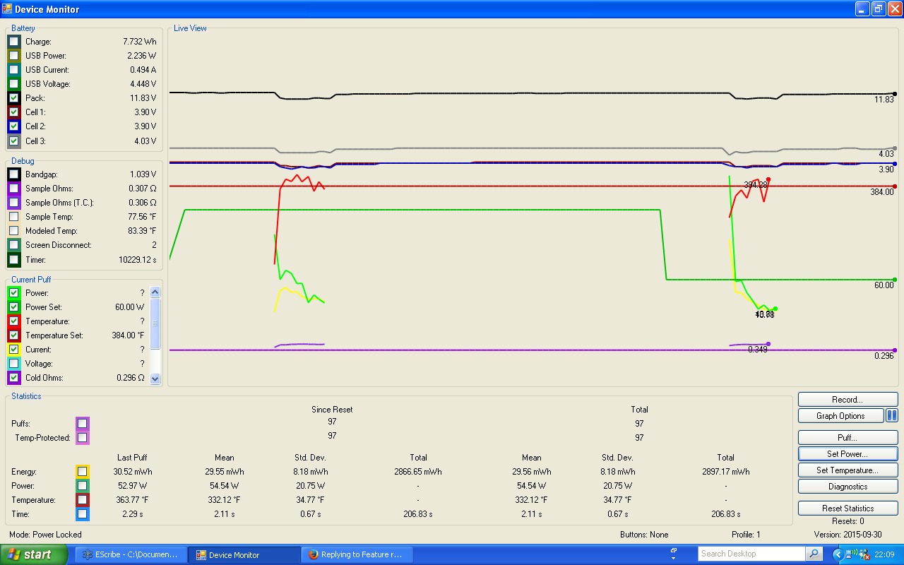 15. I think whoever explained this to you may have done it before the dna200 board. I like things to be logical . so here is how i see it:- complicated version more vapor can only be produced with more power IF and only IF you do not have enough power set initially to maintain the coil at a set temperature. If you have power set so that once the preheat hits and the target temperature is reached. no matter how much you increase the power you will not get more vapour as the device WILL NOT put that power into the coil as the temperature setting will always adjust the power to keep at the same temp! below i have a pic from device monitor, the first puff is at 100w and the second is at 60W as you can see the power delivery is almost identical {so was the amount of vapour)......Why? because the power curve that was sent to the coil was identical irrespective of power set! Simple version:- when using temperature control there is only one constant setting...............temperature! everything else is a variable in relation to the temperature set! ie. when you set the temperature and hit the fire button the temperature goes to and stays at the set temperature. when you set power and hit the fire button with preheat it exceeds your power setting and when the temperature hits target it is way below your power setting. conclusion. I think the power adjustment belongs in the world of regulated non tc mods where i agree more power more vapour! the only purpose of using power on a tc device is to lower the power to where the coil never quite reaches temperature ( which I have used to great effect. see my posts on SS) which can give a more consistent vape especially with SS.