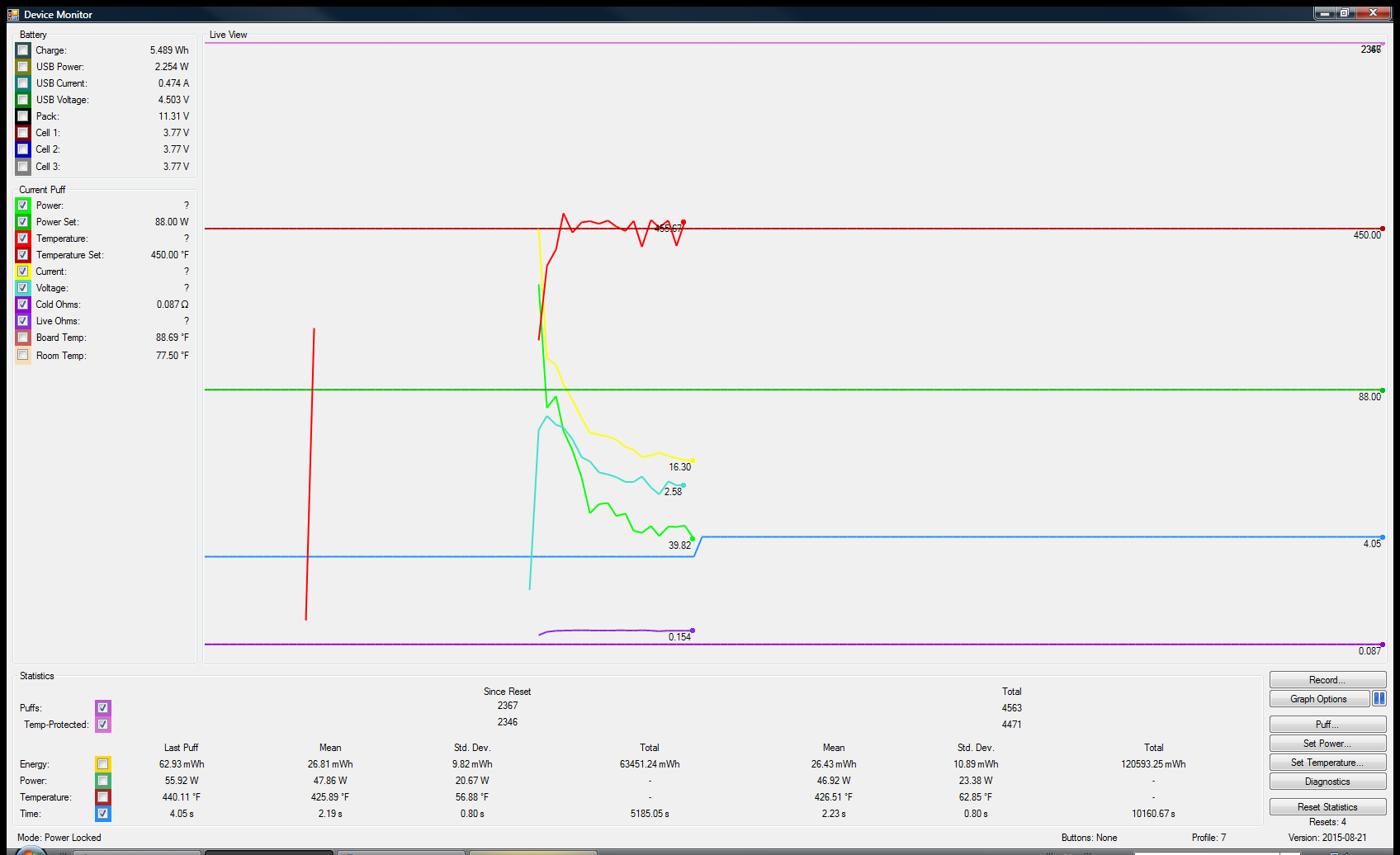 Hi, just made my first ever mod! I have just ran the case analyzer and the results are a lot different to the standard set. The question is, Should I be worried? Case cooling time constant 337.93s Case heating constant. 316.03 Case USB charge temp rise. 7.95 F 18.59 F/A Thanks in advance