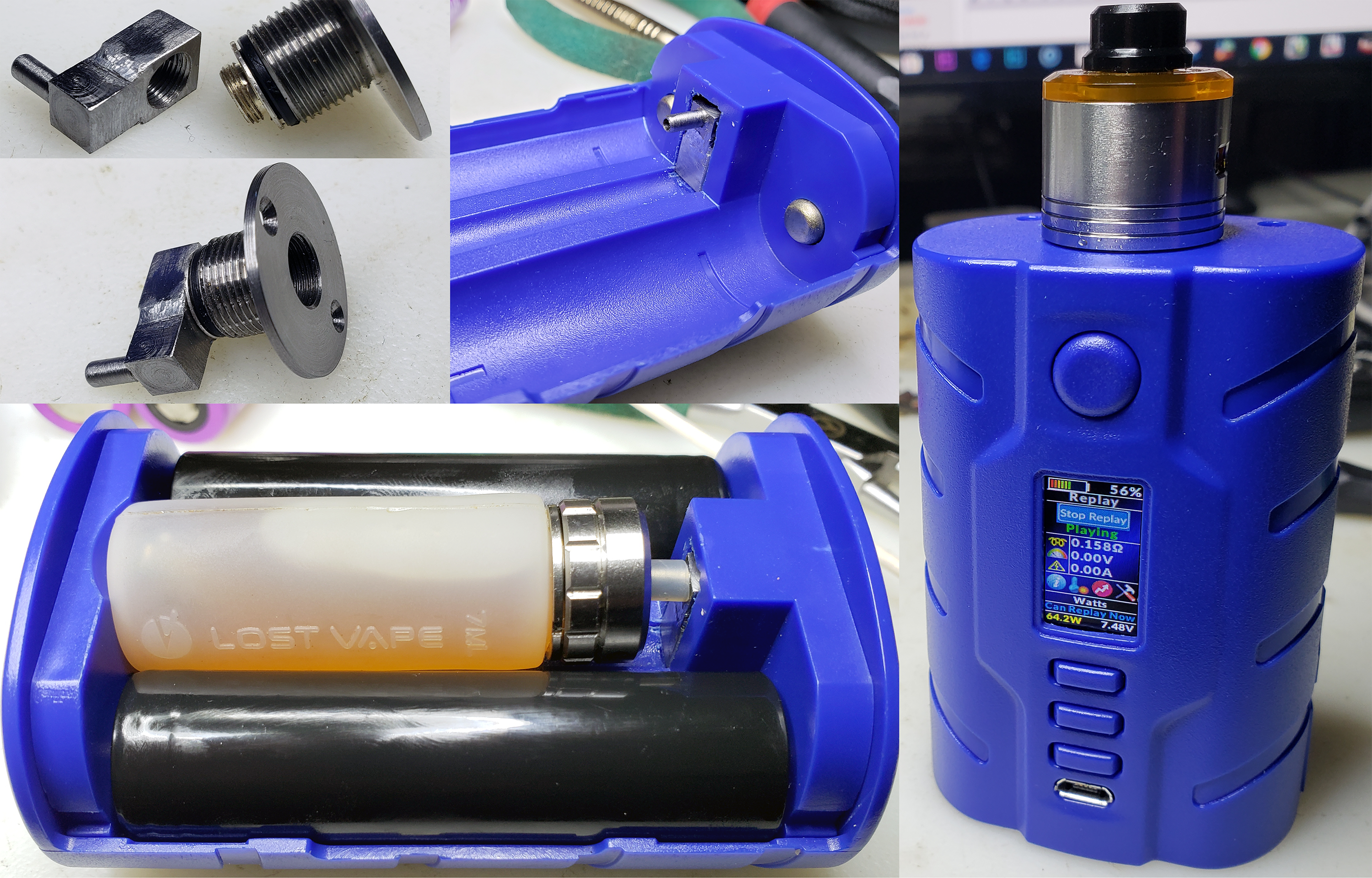joevapes3@, cool mod, I can see right through it. 1) For the connector: I use MM510, I just don't remember which version though. I think THIS ONE. That Chinese connector, that I used first, started to leak in a couple of weeks. 2) Displays are identical, the one DNA250C and SXK chip. I swapped them out several times, they work. Here is my photo of SXK chip and DNA250C display working together.