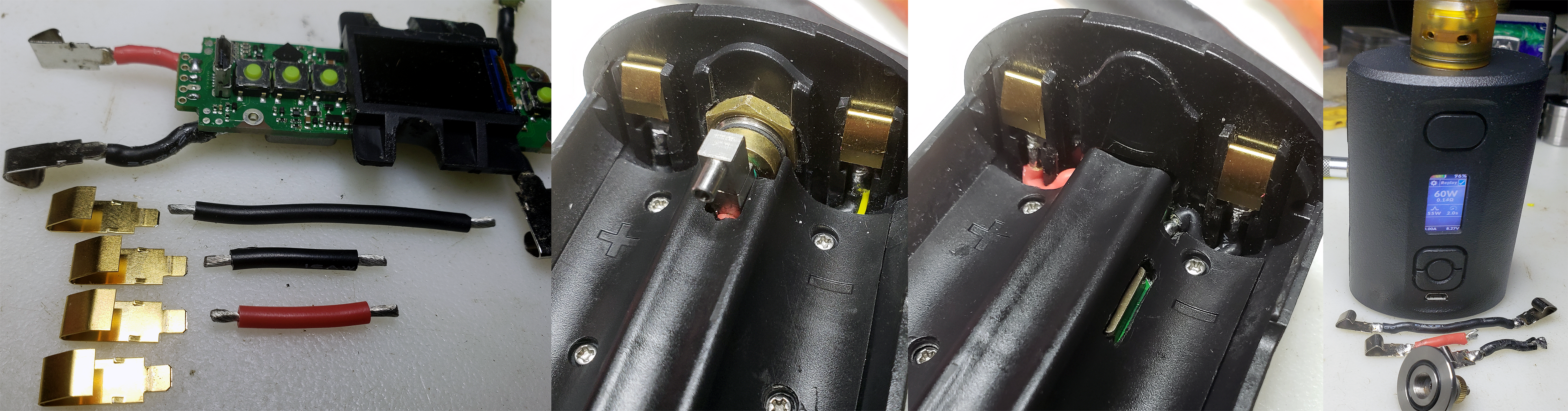 joevapes3@gmail.com, Good job! I noticed you are using THIS Chinese connector? I hate to be the one to bring you the bad new. I used this connector in my SXK Boxer clone (with DNA250C) too. It lasted for about a month and started leaking. I replaced O-Rings and bought me yet a couple of weeks, before it started leaking again. It turns out that this connector is the royal piece of you know what. I ended up replacing it with my trusty English MM510 connector. No more leaks. Also, the battery contacts, of SXK Boxer, are made out of nickel plated carbon steel and loose contact with batteries every once in a while. I cleaned them, brushed them, bent them out and still, every once in a wile, the unit refused to power up. I got tired of it and replaced them with gold plated beryllium copper contacts, that I pulled from KeyStone battery holder. So far - so good. I suggest you do the same.