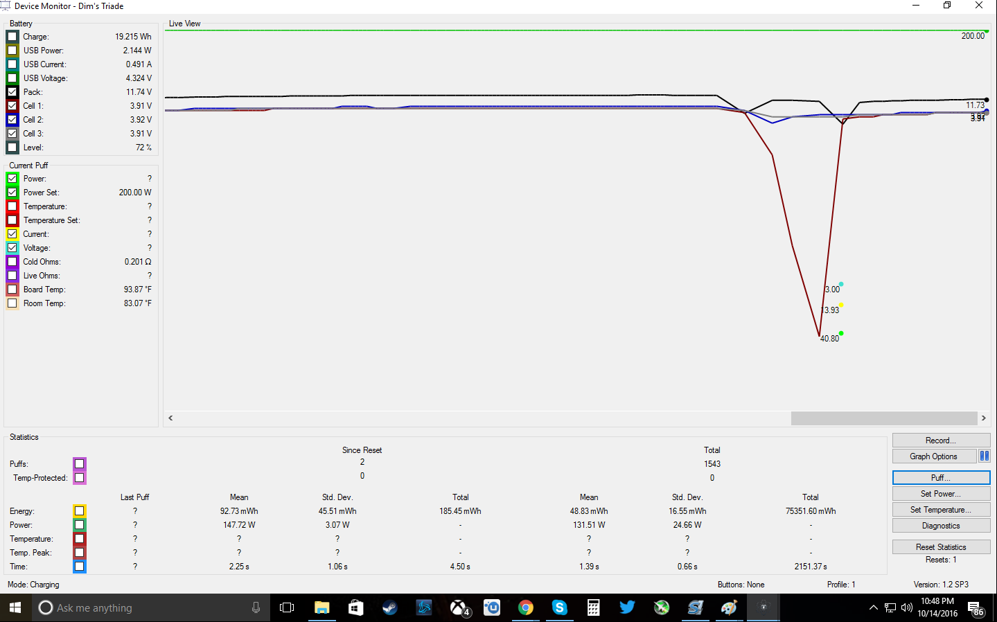 With fully charged batteries my Lost Vapes Triade will not fire at 200 watts says check battery any suggestions?