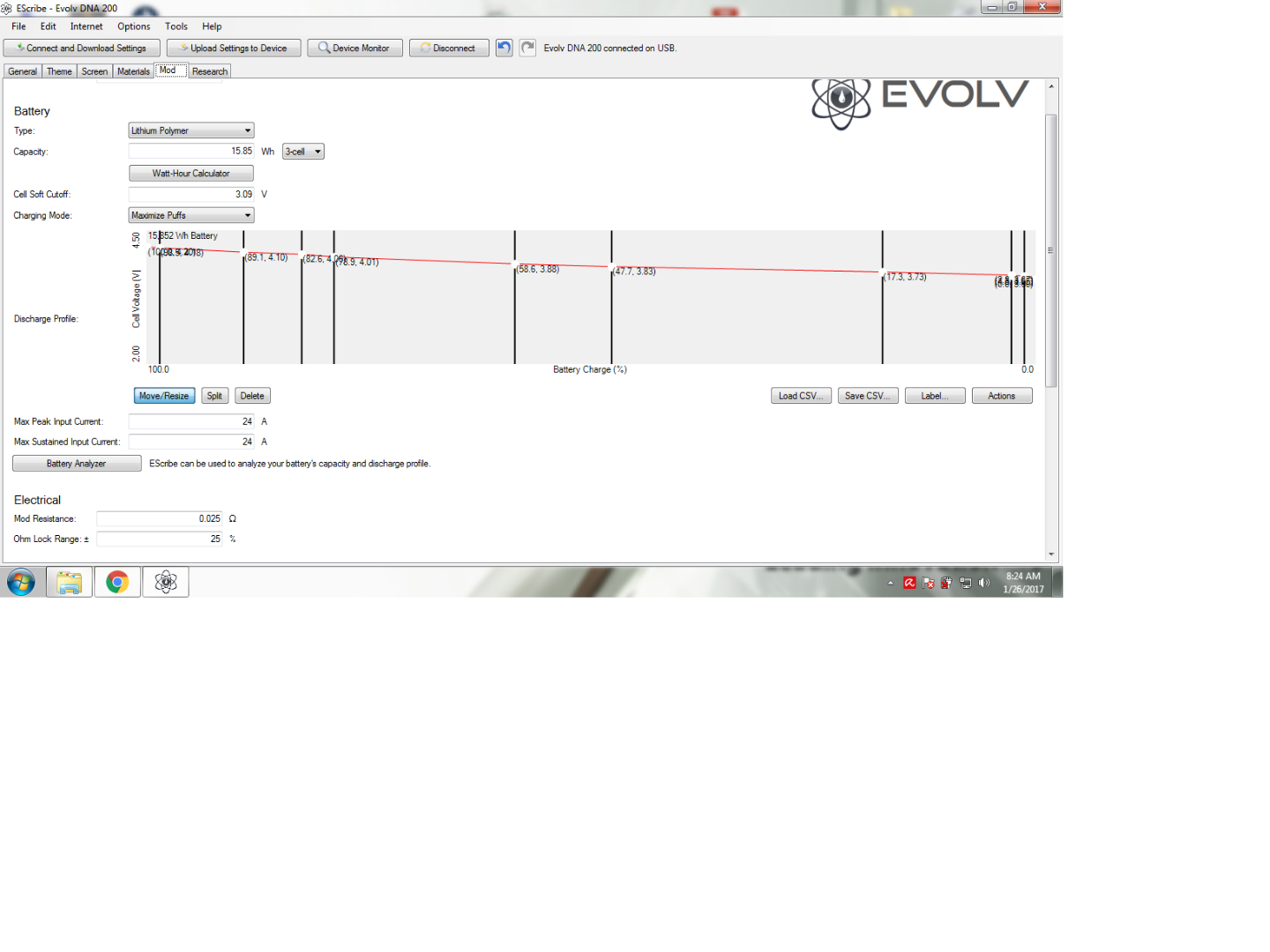 When i changed Lipo with a second one, a good one, device turns on and battery bar is not empty at all ... i conected to Escribe and i made a print screen to Device monitor.... I attached a CSV file with device monitor with my second Lipo. panzer_dna200_problems_with_second_Lipo.csv