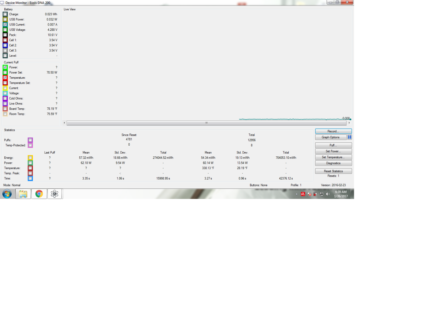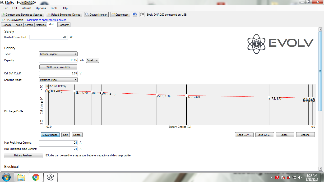 When i changed Lipo with a second one, a good one, device turns on and battery bar is not empty at all ... i conected to Escribe and i made a print screen to Device monitor.... I attached a CSV file with device monitor with my second Lipo. panzer_dna200_problems_with_second_Lipo.csv