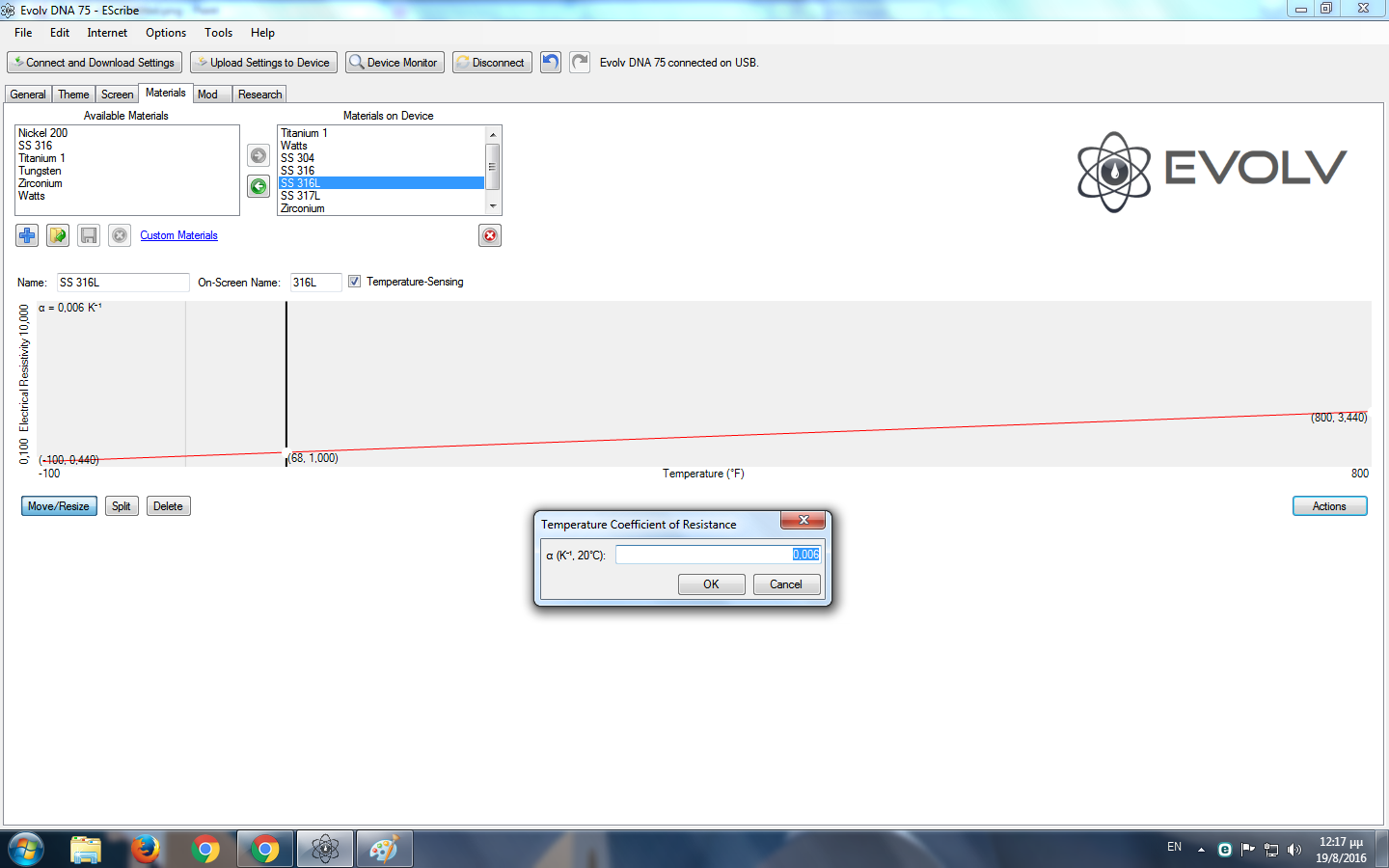 Once you change the TCR on one material it automatic changes it to all other materials and once you change a battery it puts it back to its default 0.006