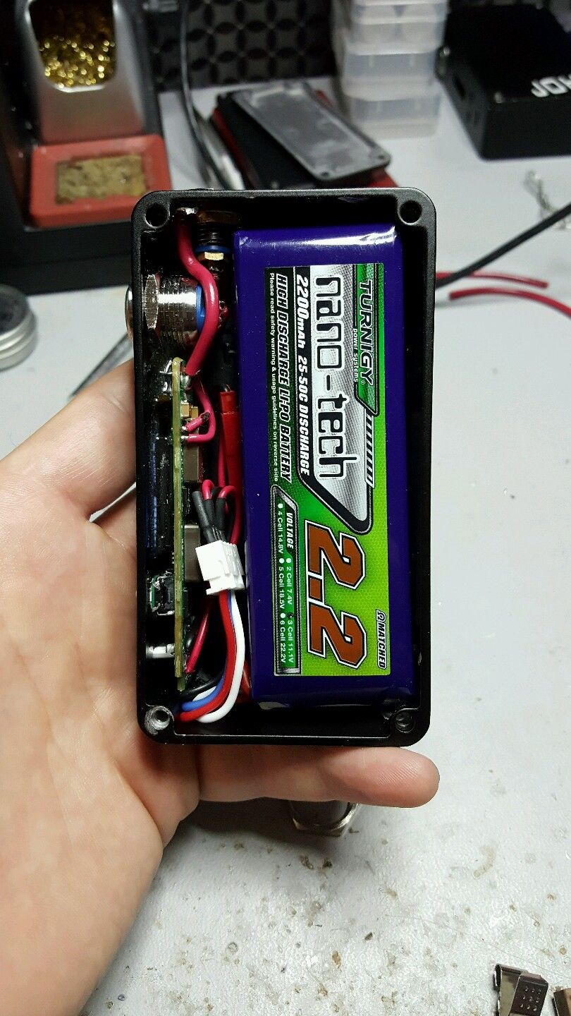 Felt the urge to create something wild in a small G box. Messed around with these LiPos in my airplane so I had ordered an extra one. I CNC cut the lid of this Alpine Tech and rewired the LiPo for a smaller quick disconnect. Had an extra VaporShark Lying around so I ripped that apart and created a pretty slick monster mod for basic vaping around the house. Also retrofitted a 16MM button instead of the basic 12mm, blue is my fav. It also fits a 950 3S battery if anything were to ever happen to the Graphene Enjoy