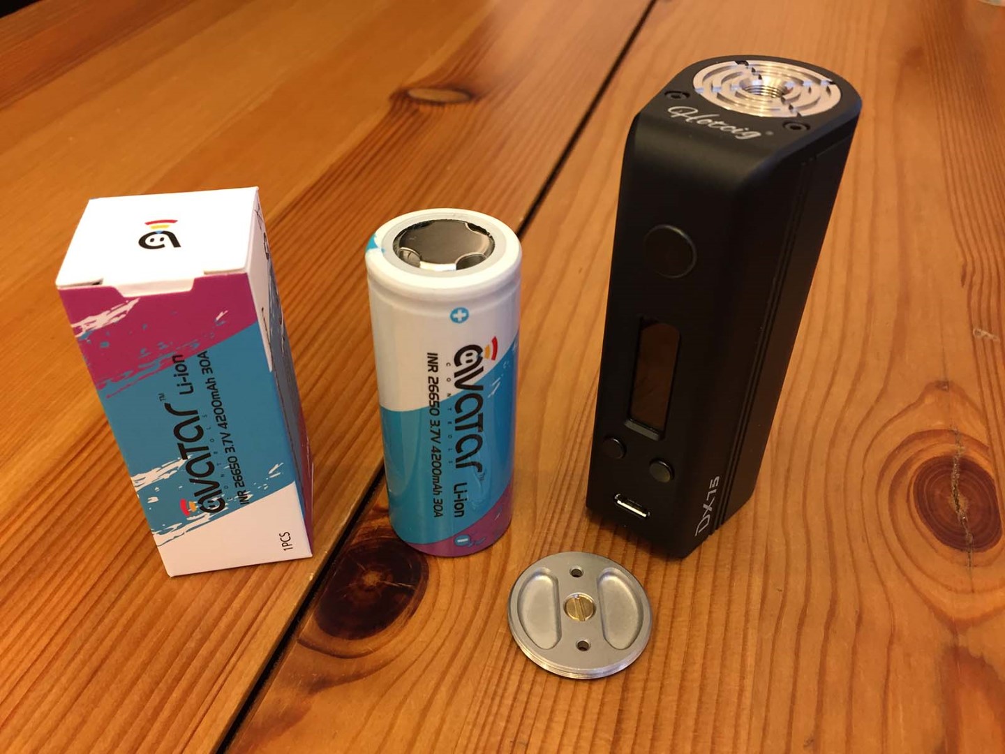 Escribe v1.2 SP5.2 battery analyzer test on 1x almost new Avatar INR 26650 Li-ion 3.7V 4200mAh 30A battery, about 1 week in use. Hotcig DX75, Soft cutoff 3.05V, 40W, Kanthal A1 coil, 0.21Ohm, cold water and fan to cool the deck and mod. Total 13.885Wh Avatar_INR_26650_Li-ion_3.7V_4200mAh_30A.csv