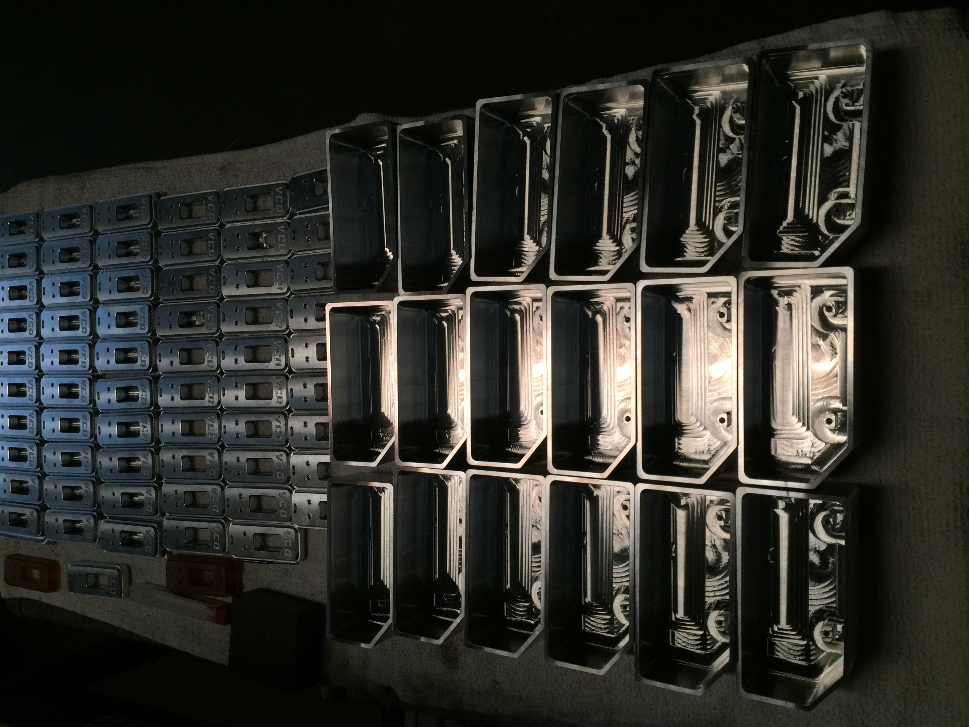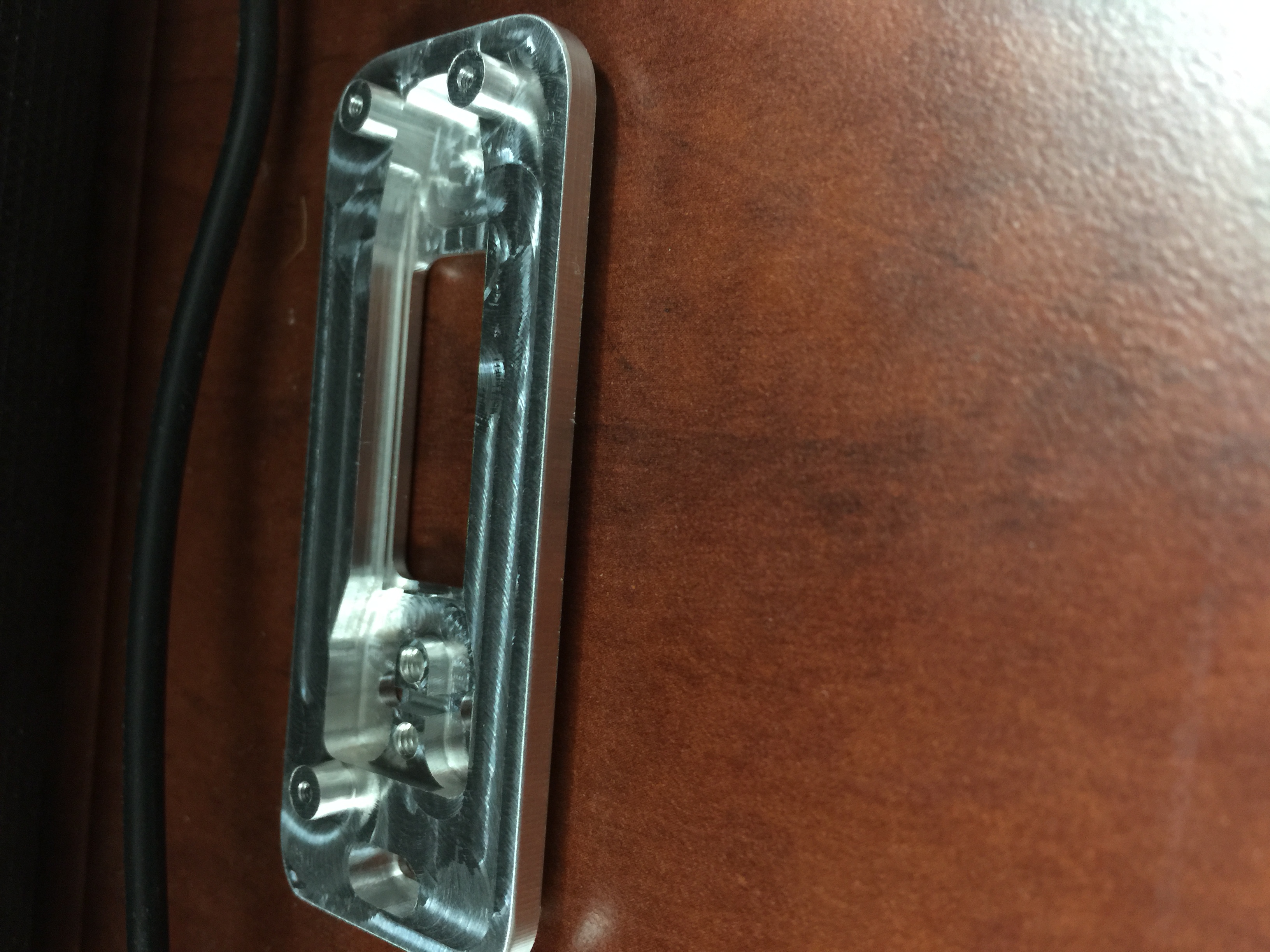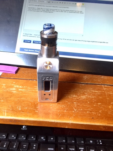 7. Will have custom actuator flush along with same copper, nickel, show chrome (think motor cycle wheel show chrome), and heavy 24K. All milled from 7075 Aluminum. No epoxy. Custom faceplate pressure fit with backplate held by 0x80 (4) screws threaded to faceplate through delrin backing plate. Lid has milled groove with 4mm of compression via o-rings. Using FDV V3 LP (ceramic core) which is SS and will be 24k plated as well. Been a 8 month project with 50 units going out. Days away from being sent to gold plating from the chrome. Using 3S 11.1V 65C 1550mAh Lipo with its own milled cavity. It's a big f'er.