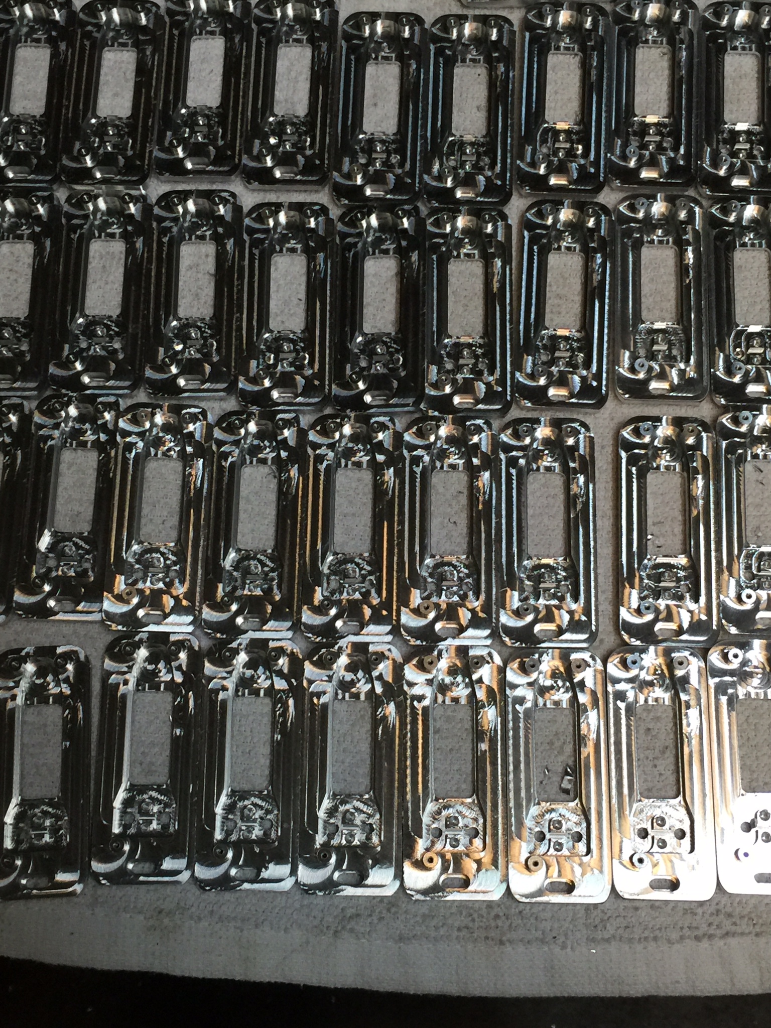 Will have custom actuator flush along with same copper, nickel, show chrome (think motor cycle wheel show chrome), and heavy 24K. All milled from 7075 Aluminum. No epoxy. Custom faceplate pressure fit with backplate held by 0x80 (4) screws threaded to faceplate through delrin backing plate. Lid has milled groove with 4mm of compression via o-rings. Using FDV V3 LP (ceramic core) which is SS and will be 24k plated as well. Been a 8 month project with 50 units going out. Days away from being sent to gold plating from the chrome. Using 3S 11.1V 65C 1550mAh Lipo with its own milled cavity. It's a big f'er.