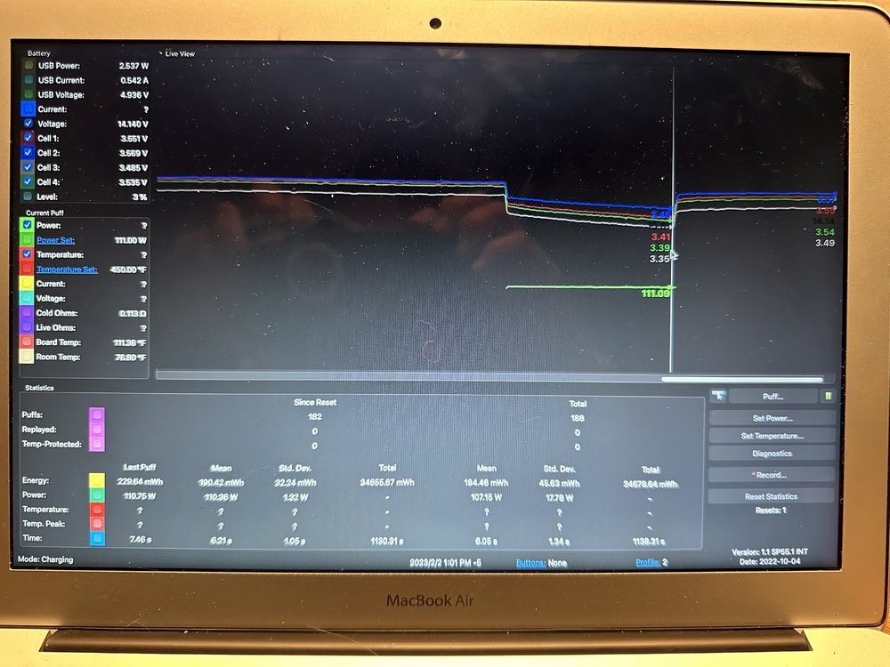 One other question - when cell 2, the low one, is hitting the cutoff at 3.1 the other two still have 0.4v give or take,, the battery meter still shows 6% and the mod still fires, just not at full power. Should I continue using it to get those other two down to 3.1 or do I need to stop? -