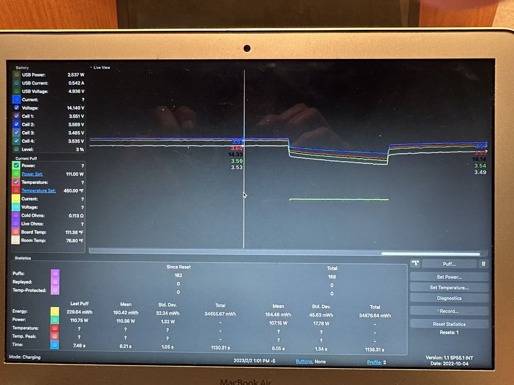 I just built a mod with a Maxamps 2800mAh 4s 100c battery. I'm at 2% battery right now. Hooked it up to device monitor and taking a drag - 111 watts, dual mesh coils at .12, 6-7 second drags - cell voltage is only dropping to ~3.5, well above cutoff. I'm not a battery expert - but I feel like I can be getting more out of this battery. Should I just be happy where it's at, or is there a way for me to modify the curve to give me that extra life? Thanks in advance.