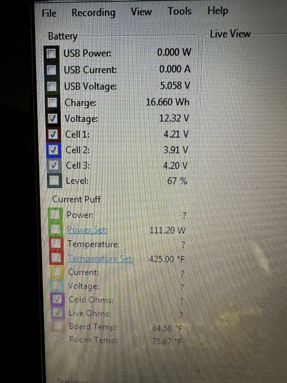 So after three full discharge to 3.1 and full charge cycles I'm still seeing the same thing. Cells 1 and 3 at 4.2, cell 2 at 3.92-3.93. I've tried a recovery charge after each cycle, which does nothing. Any other ideas what might be going on here? I've built tons of these with lots of different brands of batteries, to see this from a Maxamps is really weird, and for escribe to also just stop charging completely at this point is also very weird, I've never seen anything like it. Literally zero input current, whether connected to escribe and device monitor, or via the normal usb I use, having changed display while charging to show individual cell voltages. The charging icon just goes away and it sits there at 3.9. I spoke with a guy from Maxamps this morning, he suggested the multiple charge and discharge but with no change I'll reach out again in the morning. The other option is forking out cash, at least as much as the battery cost, for a balance charger that will recover that individual cell. I feel like I shouldn't have to do that. Anyway, any other thoughts or ideas? I'm impressed with your ingenuity with your solution but it's not something I'm willing to try. -