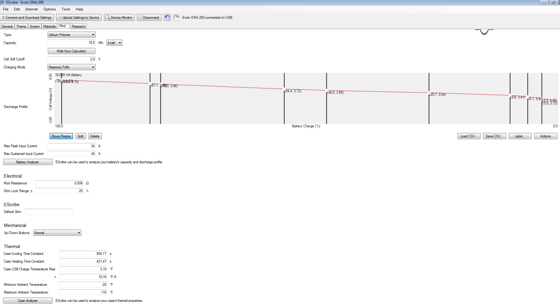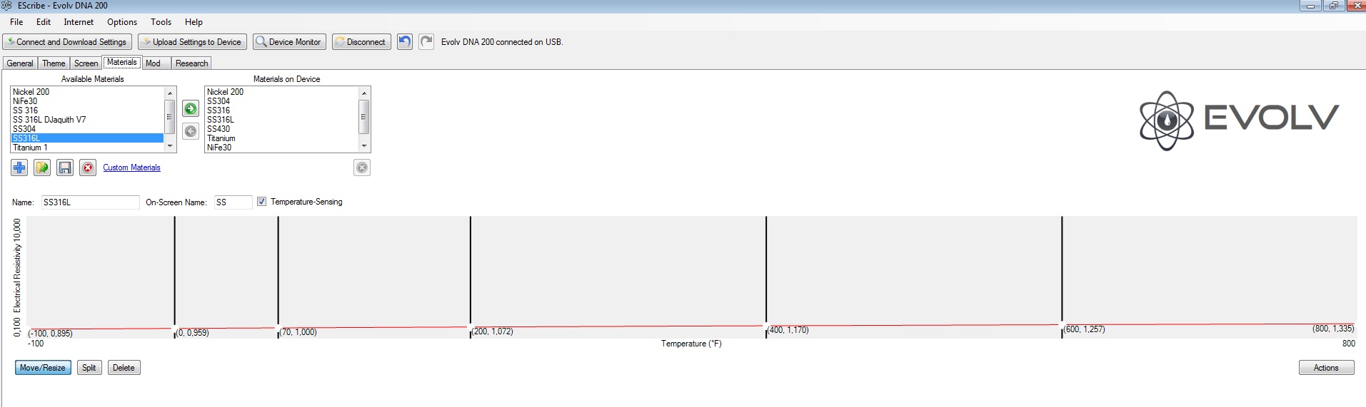 4. retird Device is LostVape Therion DNA133 (based on DNA200) I tried not to lock ohms - the same result. Where can I get profiles provided by Evolv? I'll post a screenshot a bit later, thank you!