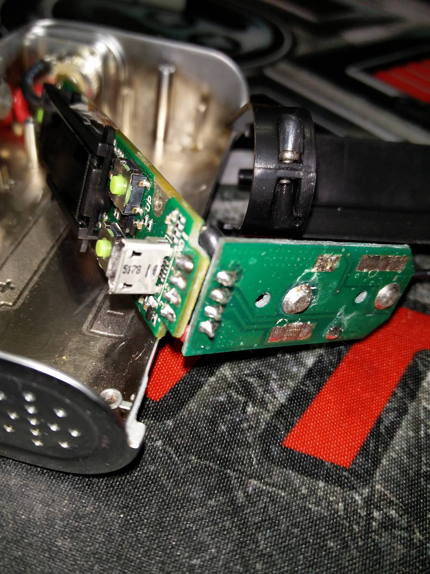 Guess here's a bit more info: - I had this working fine for 2-3 months then it just stopped working one day. Never been dropped not exposed to water - I've tried numerous batteries, they're all the same results. - Verified if the fuse was blown, its not. Read somewhere on this forum to jump the B+ and skip the fuse, still nothing. - used a multimeter to verify all pins from the reverse battery protection has good paths to the DNA200 board. - verified there is 7.4V going into the DNA200 board - checked the entire DNA200 board to see if there is any other burnt resistors, nothing wrong that I can see with a flashlight and magnifying glass. As for the support, I went to http://www.evolvapor.com/index.php, Send message and it brought me to http://helpdesk.evolvapor.com/index.php?a=add to create a ticket. I dont see any other way to contact Evolv. Attached are pics of escribe. Thanks in advance for any help and suggestions.