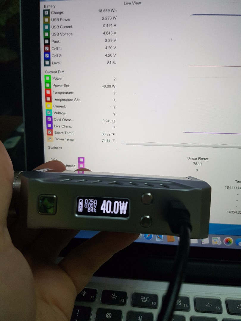 I am using a Finder 133 with DNA200 chip. I have set the correct watt hours and everything but for some reason the battery meter is wrong. As you can see from the screenshots below, both batteries (LGH2) are fully charged but the mod still reads them as 85%. That is probably the first time I've seen this and I have been using this mod for about two weeks now. I charge my batteries using a Nitecore i2 charger (the old 500mAh) one but I sometimes use a Xiaomi Power Bank with an output of 1A when I am on-the-go and my batteries are low. On a side note, I never fire while it is charging because I feel like it is unsafe, so I let it go up to 50 - 60%, for instance, then take the charging cable off and start vaping. Please help because this is truly annoying. Thanks!