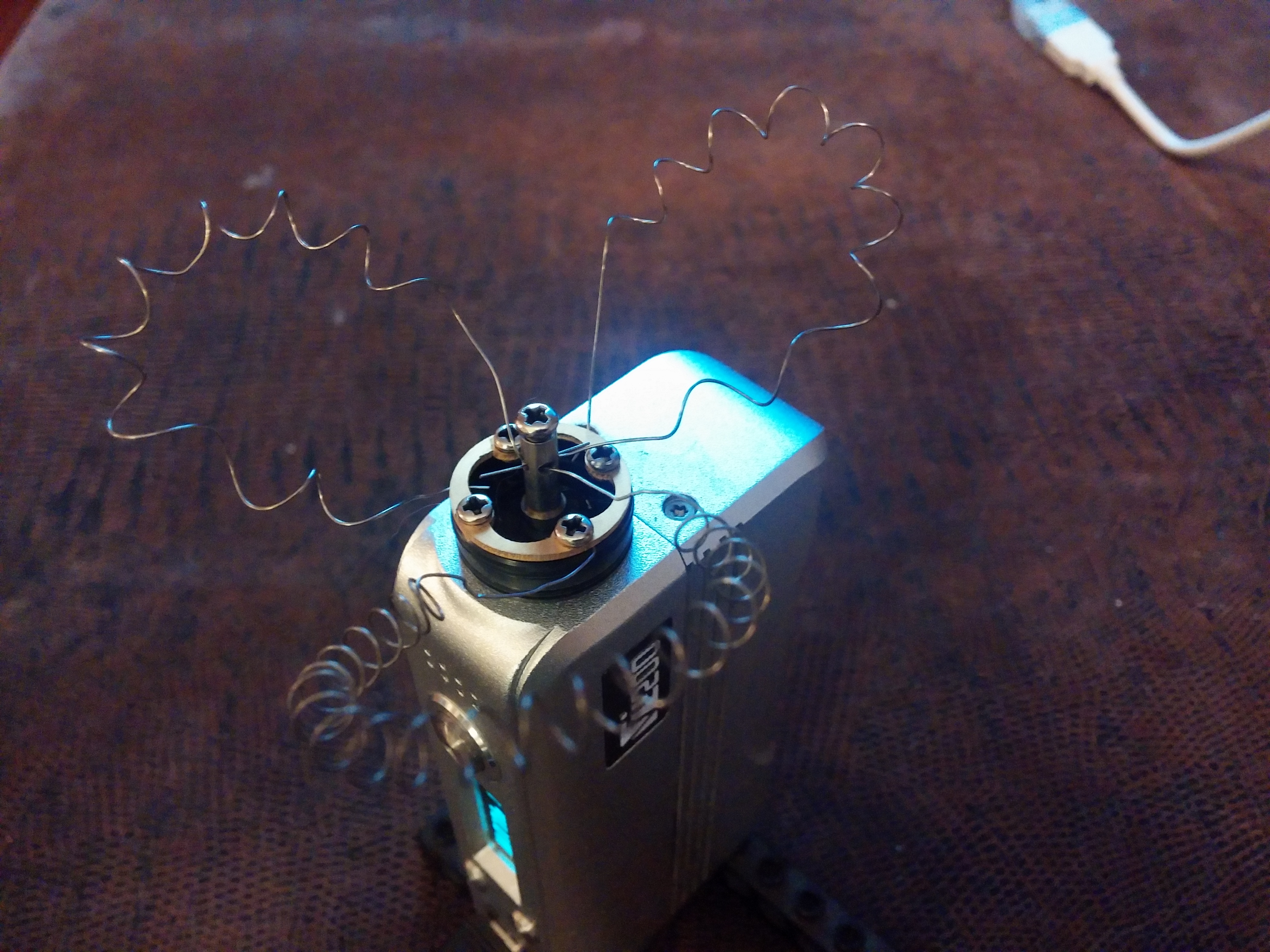 8. Battery test finished. Took about 45 minutes. I took a couple junk coils I had laying around and put them in an empty big block build deck to act as the resistor. Two wasnt enough but three was way more than enough. They got hot but didn't glow during continuous 40W test fires. The test pulses the coils. On for 10 seconds. Off for 20. I believe this continues until the weak cell drops to the programmed cutoff voltage. In my case this was 3.09V. The pack has one cell that diverged quickly as voltage approached 3.3V or so. The other two cells never dropped below 3.2 before the test concluded. Result: 9.07 Wh I'll probably run it again every day for a couple days to see if the battery pack improves after a few more cycles. Pic of Atty "resistor" attached. I think the coils were about 26ga kanthal and measured 2.46 ohm each. I had a ceiling fan blowing to keep things cool.