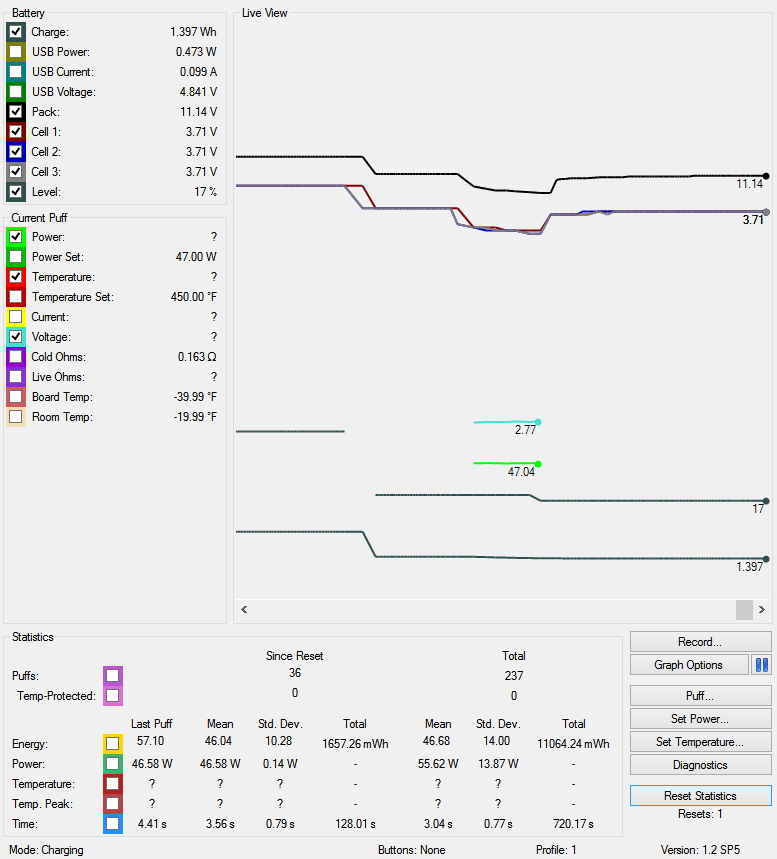 3. Sorry for my poor english first of all. I bought a converter for 110v to 220v to charge my mod with charger came with the package. I can see the sign of charging in the screen, for sure it is charging. but the thing is i never know when its gunna fully charged. I have tried to charge up to 12 hours and the result was like 15%. this happens same to USB charging. (I'd like to say usb charging seems faster than using converter) here is a picture of monitoring. Vendor says they can replace it for me. but i wanna try to solve this problem by myself if it's not about hardware problem.