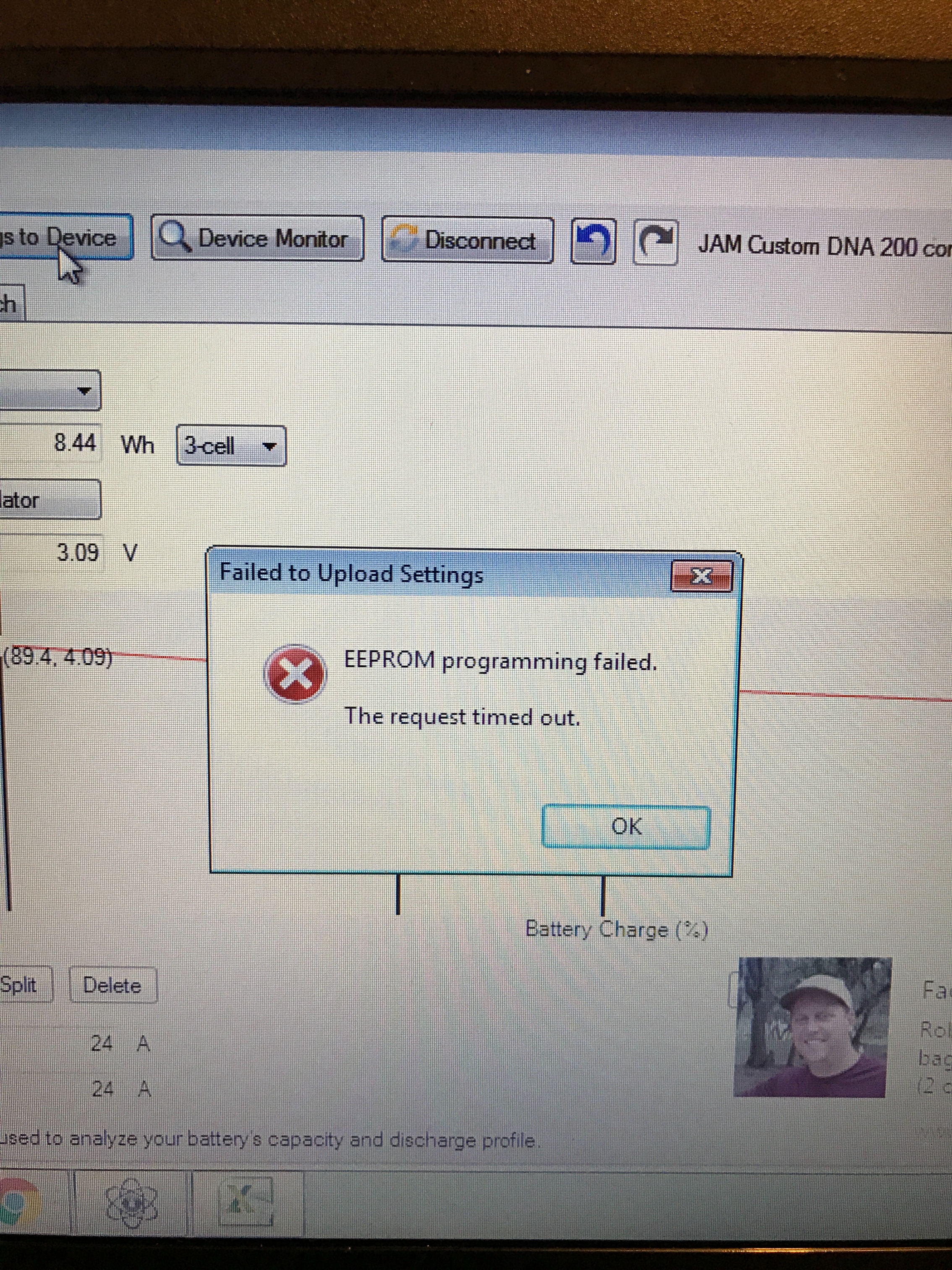 So, I tried loading a battery csv file for the battery I have installed, and it continuously failed, I then changed my Wh settings, went to upload the settings and now I'm having some issues. Getting these errors. Any ideas?