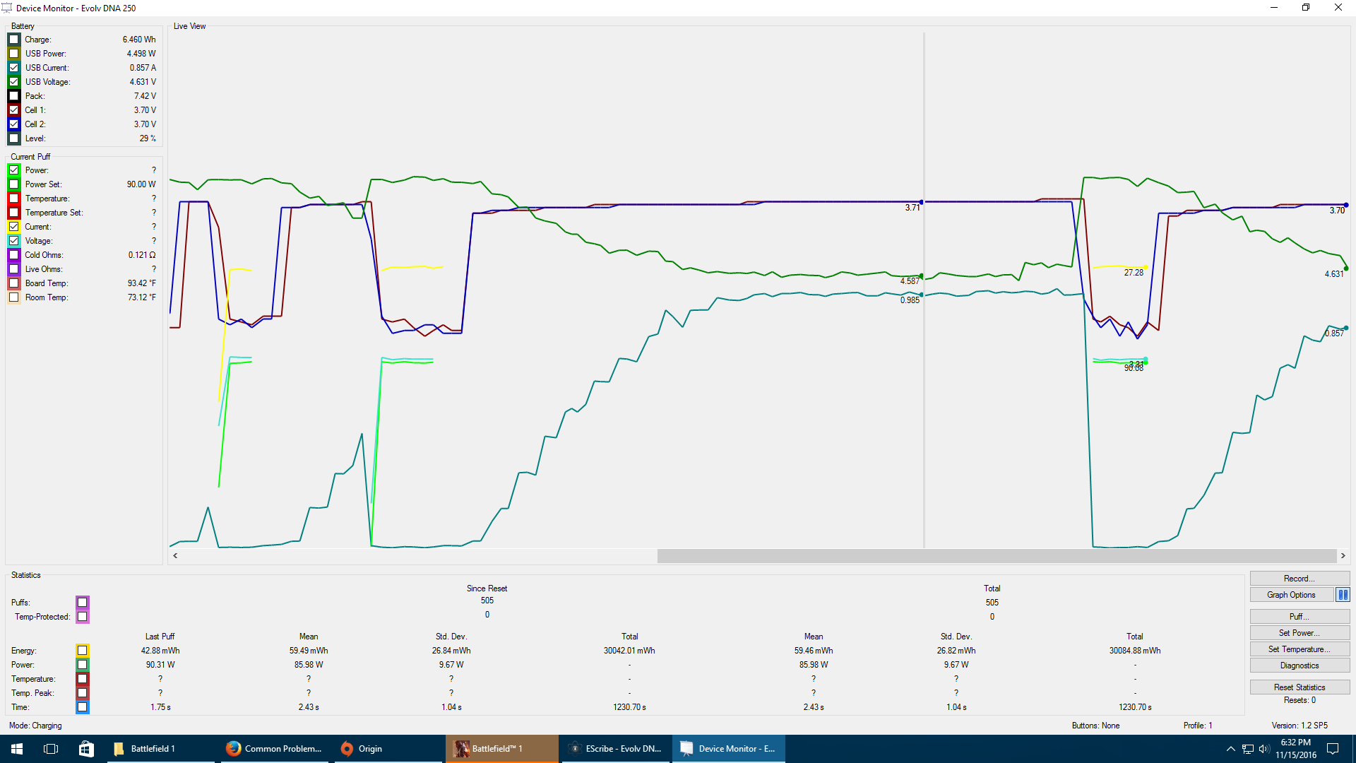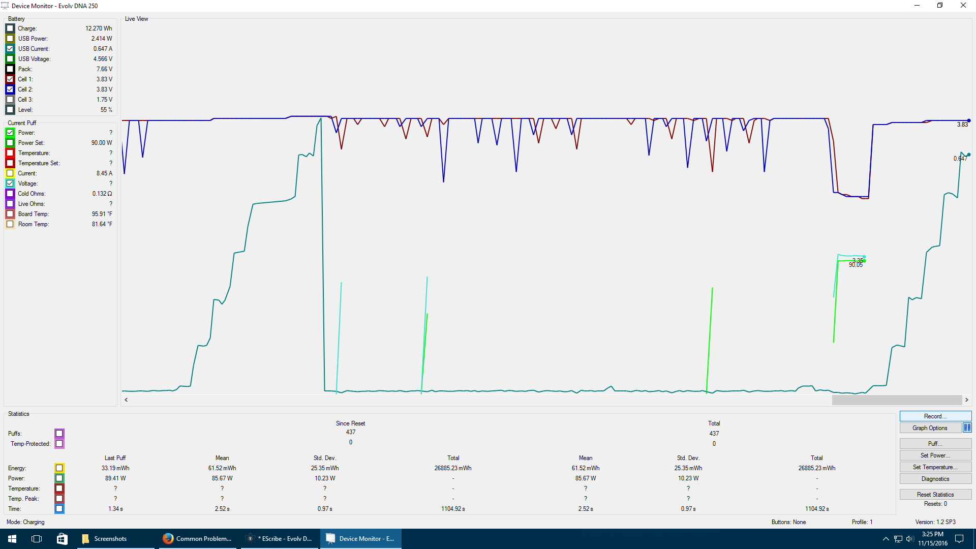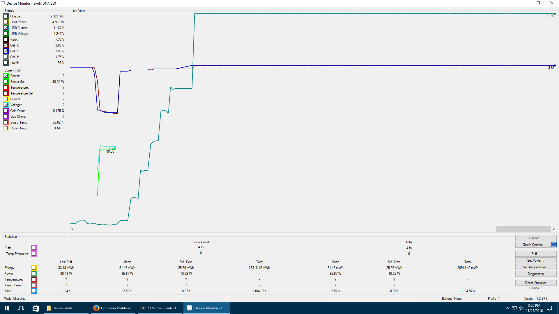 I got one when the mod is just sitting charging and the other shows it trying to fire holding the button and a small part where it actually fired. I have tried different battery sets with no difference.