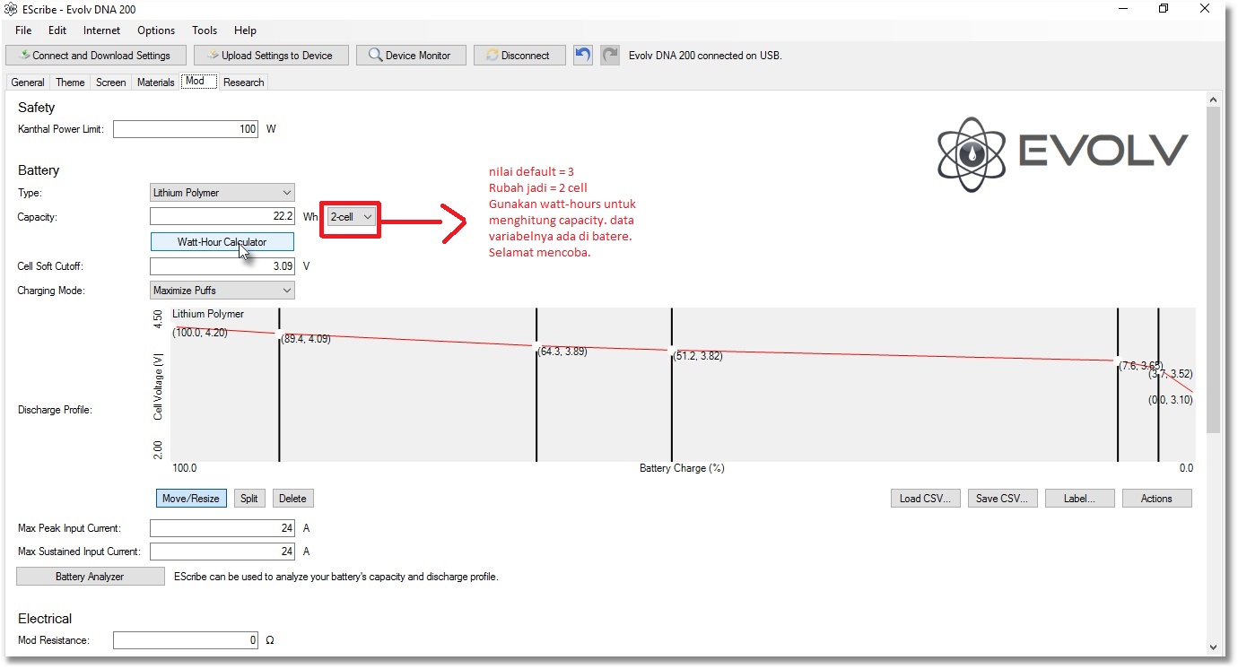 Hi all, I do have the same problem today. It happen after i escribe my Finder 133. Almost desperate, but then i try to check the escribe software, then finally. You should Try to update the firmware of the mod to early update. Don't forget to backup all your settings before did the update. Then open the escribe software, choose Option -> User Interface -> Manufacturer. Ussually if we don't choose the User Interface, the default is Clean. Then choose Mod tab. You will see Battery option. Beside the Capacity text box, there is a drag option bar, the default is 3-cell. If you are using Finder 133 with 2-cells battery, as i am, then you have to change the value become 2-cells. Then click the Watt-hours calculator to get the capacity value. The variable is written in your battery. Fill the Capacity text box after you calculated it. Then upload the settings. Voila....you did it. hehe. If this can't solve your problems, maybe others have another way. Just share my thought. Btw, coba aja dulu mas. Siapa tau bisa. Karna saya juga berhasil. Thanks