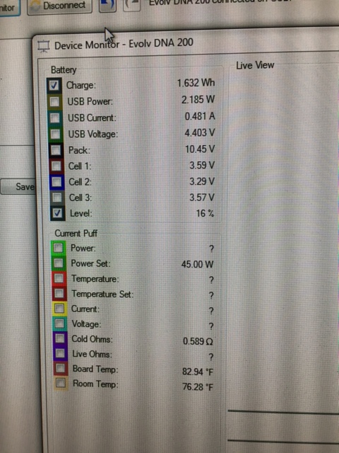 I just got my first DNA200 device the other day, a Lavabox. It's been great up until last night. Before I went to bed, it showed 19% battery remaining and I have never seen a low battery error(only vape at 45w) I went to take a puff before charging this morning and nothing happened. The screen wouldn't even turn on. I plugged it into the AC adapter and it would turn on, but it was not taking a charge. I connected it to Escribe to see what was going on and all three cells were showing 2.45v and there was no amount of charging going on. I did a USB recovery charge on it and the voltages were jumping all over the place for a few minutes, each cell going up and down independant to each other. Then they all displayed the same voltage and charging continued as normal. After a while I plugged it back into the AC adapter and all seems to be going normal as usual. What could have possibly happened over night to the battery? I have my battery wH configured to 9.99 and soft cell cutoff at 3.09. I would think I would have been seeing errors if it was below this, but did not. Anyone have any ideas?