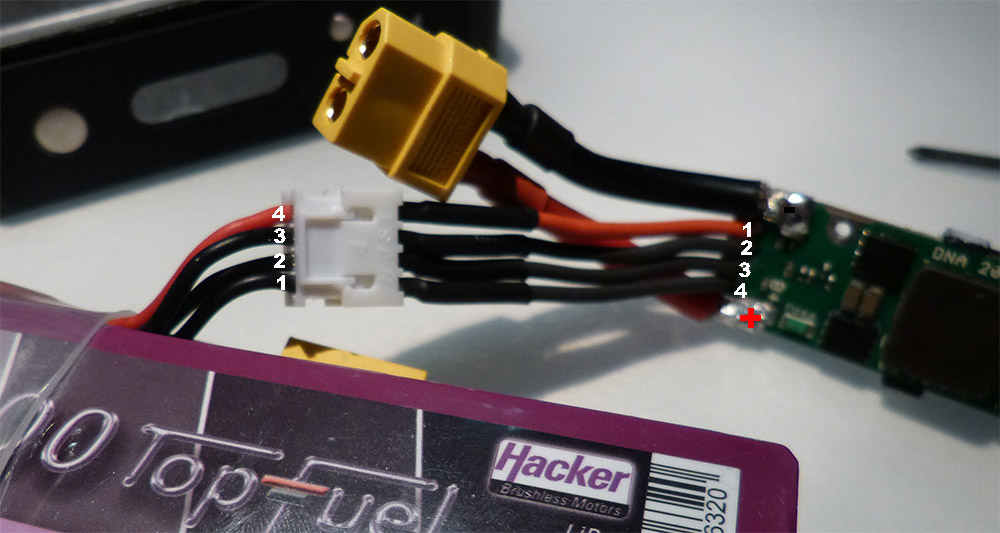 Looks like you have the balance connector on backwards -