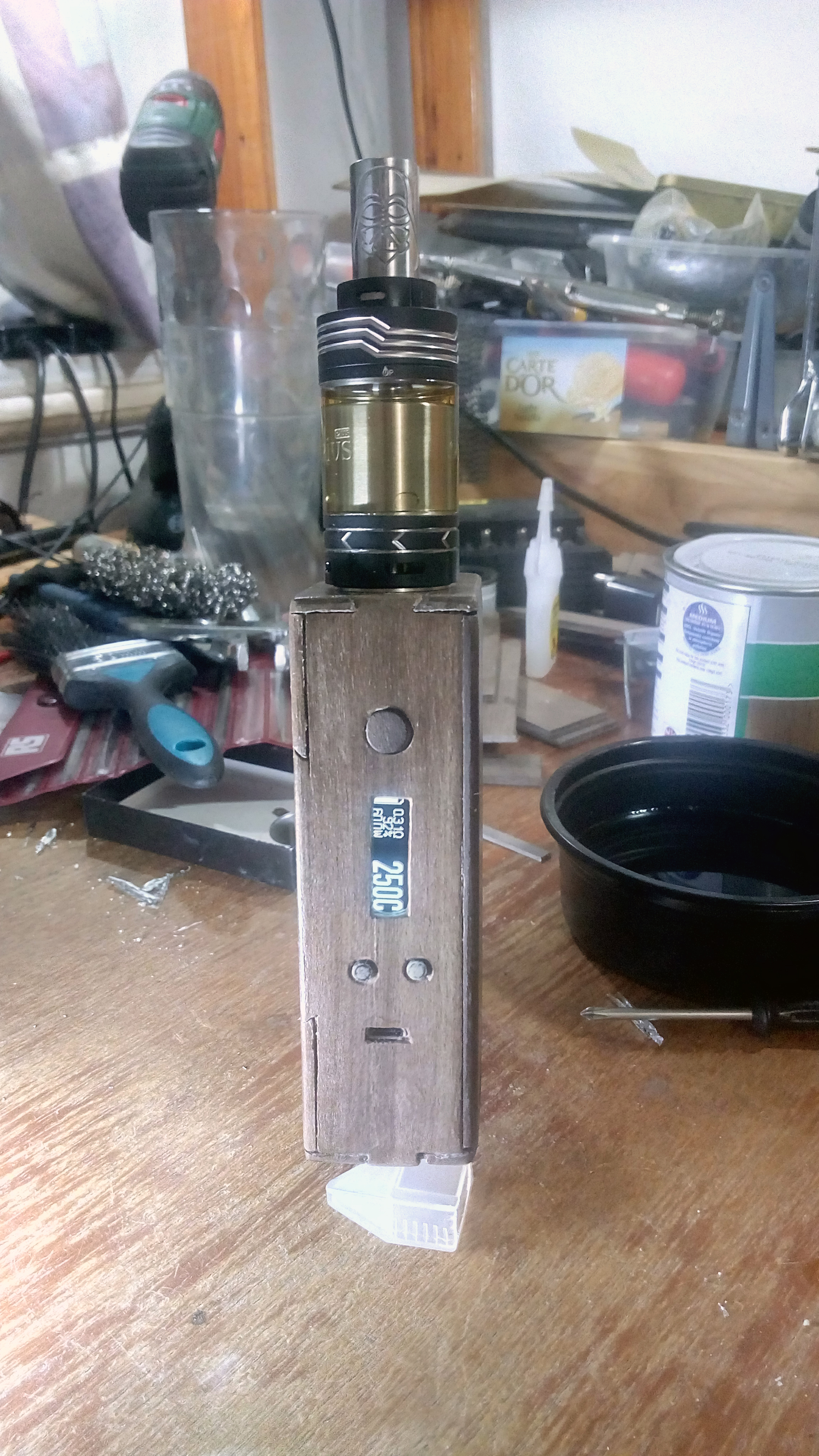 3. Late to the party but here we go. Called this Ulysses because I have a particular mod naming strategy to do with eternal champions and it suits since I've had all the parts for building it since January 2016, so it must have been off having protracted adventures. Decided to resurrect skills I've not used for 20 years or more and build a nice walnut box. While the final results aren't perfect I think it turned out quite well. I varnished the wood with matt varnish but still has a slight shine which I shall be dulling down with time and careful chemical work. You can see various stages of the build in a photo album I have. Oh and the custom menu pictures are. . .