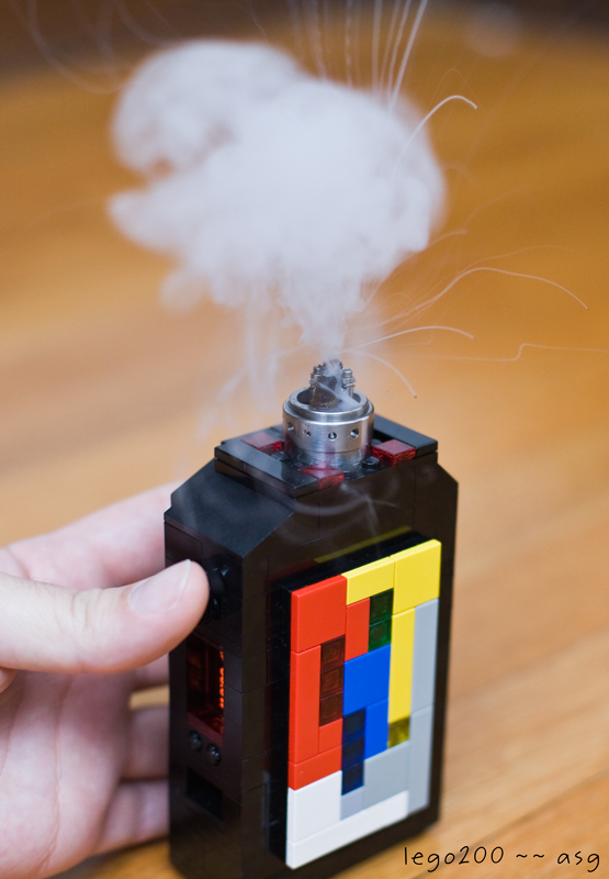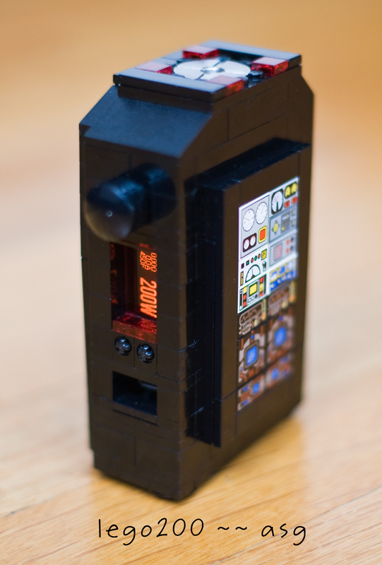I posted this over on ecf in the dna200 thread, but figured it belonged here as well: Finished this mod a few days ago, just got around to taking a few pictures. Meet the lego200: Wiring inside is 12 gauge to the 510, 16 to the battery. The extra XT60 in there is between the dna200 and the 510, since I wanted things to be modular (this being lego and all). The 510 is from fasttech, basically a varitube clone. Battery is a Turnigy nano-tech 1000mah 3S 25~50C. Everything else is lego including the button actuators, chip holder, screen mount. No glue, only a small bit of double sided tape to hold the screen. The only cut into the lego was for the 510 (a hole for the threads, and a recess for the top plate. The style plates attach onto the side. So far I've made the two seen in the pictures, but I will likely make a few more. And I need to find some mounts in black. The grey ones stand out when the plates are off (they are completely hidden when they are on though). Been using it at about 50W mostly, 410F - 430F, preheat set to 200W 1sec. Vaping great. Now I just need to keep myself from ordering more dna200's.