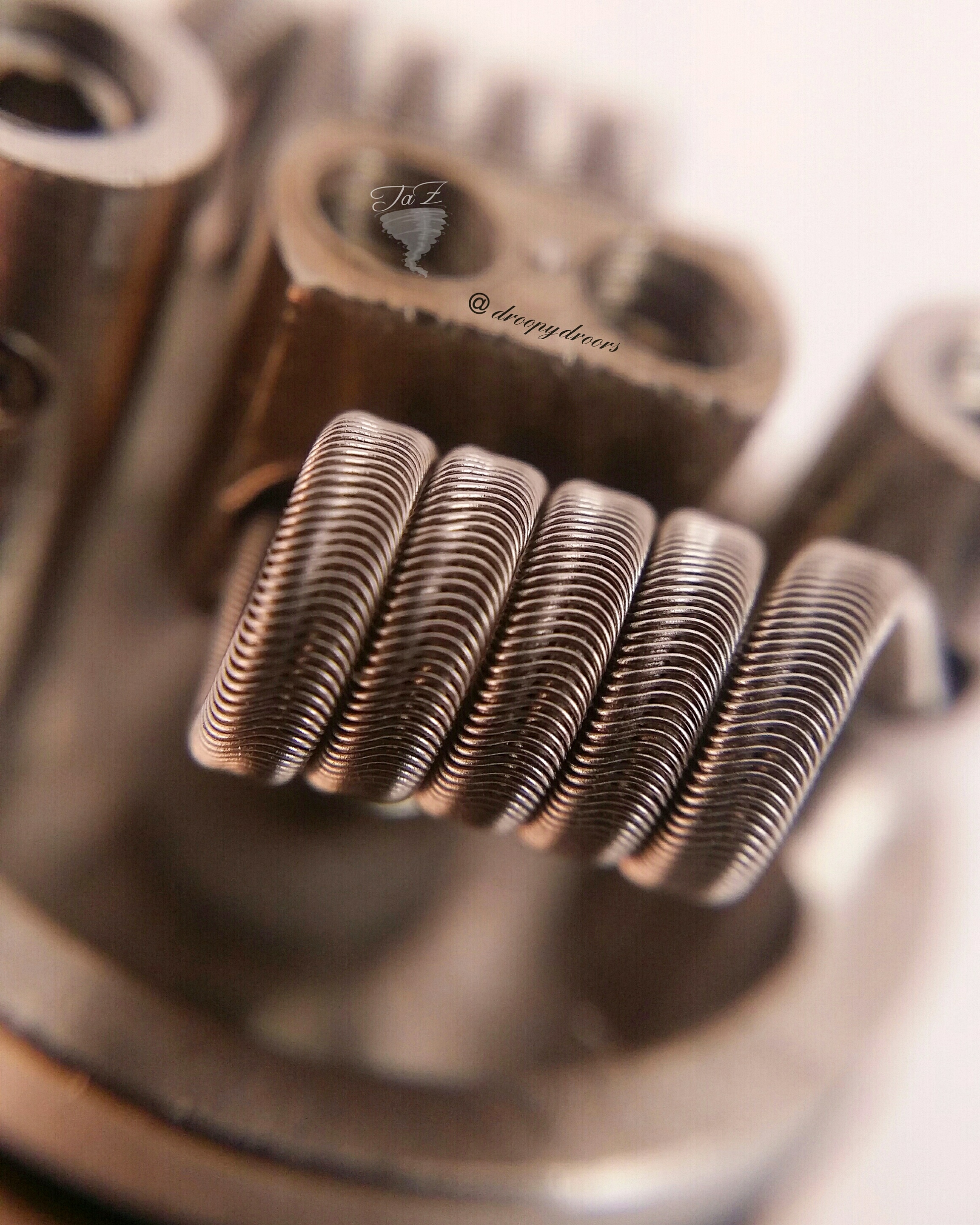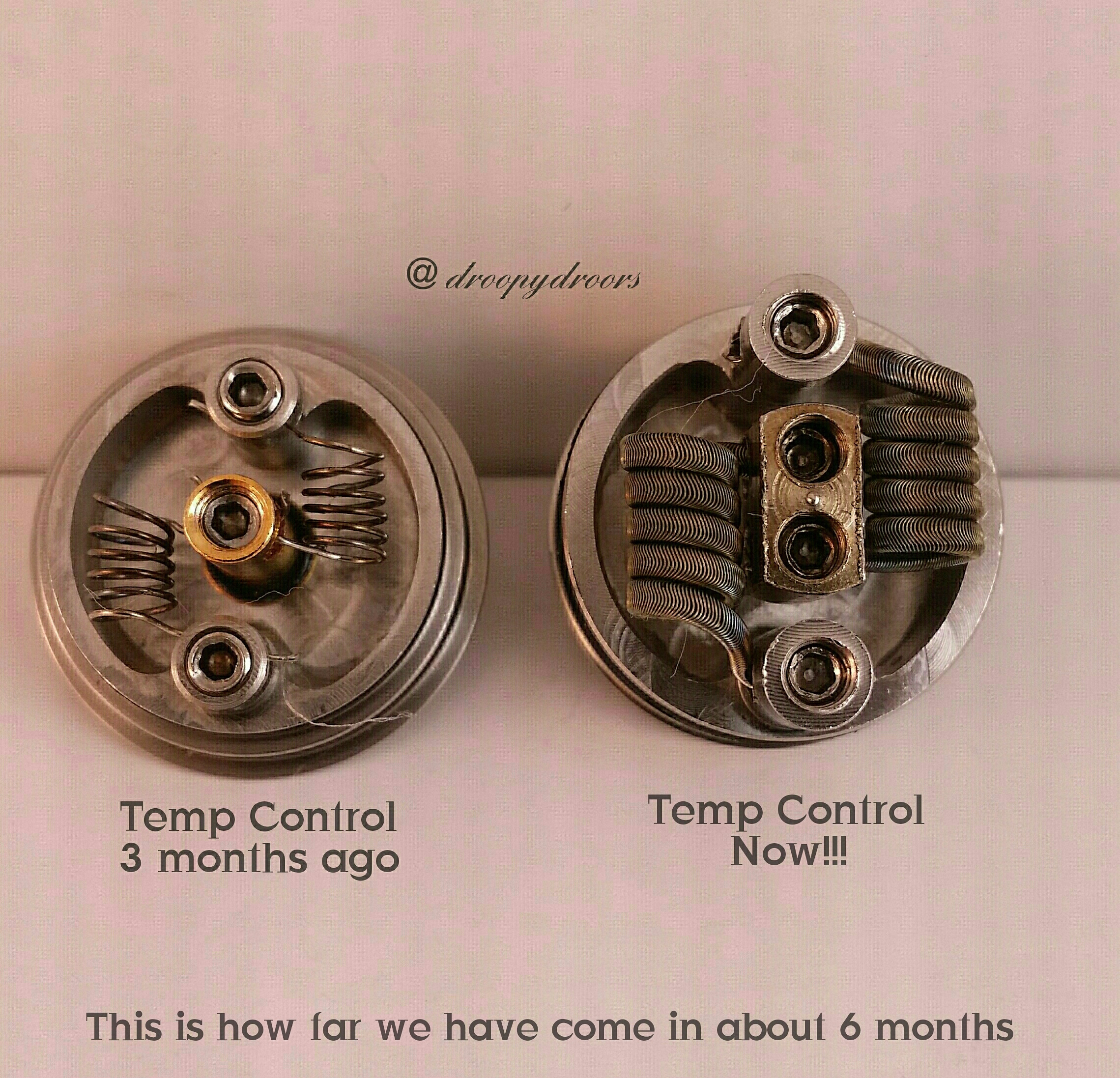 This is the coil I am running in tc at the moment. Mostly all the bugs are worked out. Specs on Dual coil 2x22g SS 316L core / 38g n80 wrap / 3mm id / 4-5 wrap / .053? Escribe settings .053 ohm locked 380 F 90 watts Preheat 150 watts for .8 sec Punch 5 Custom TCR Video to come.