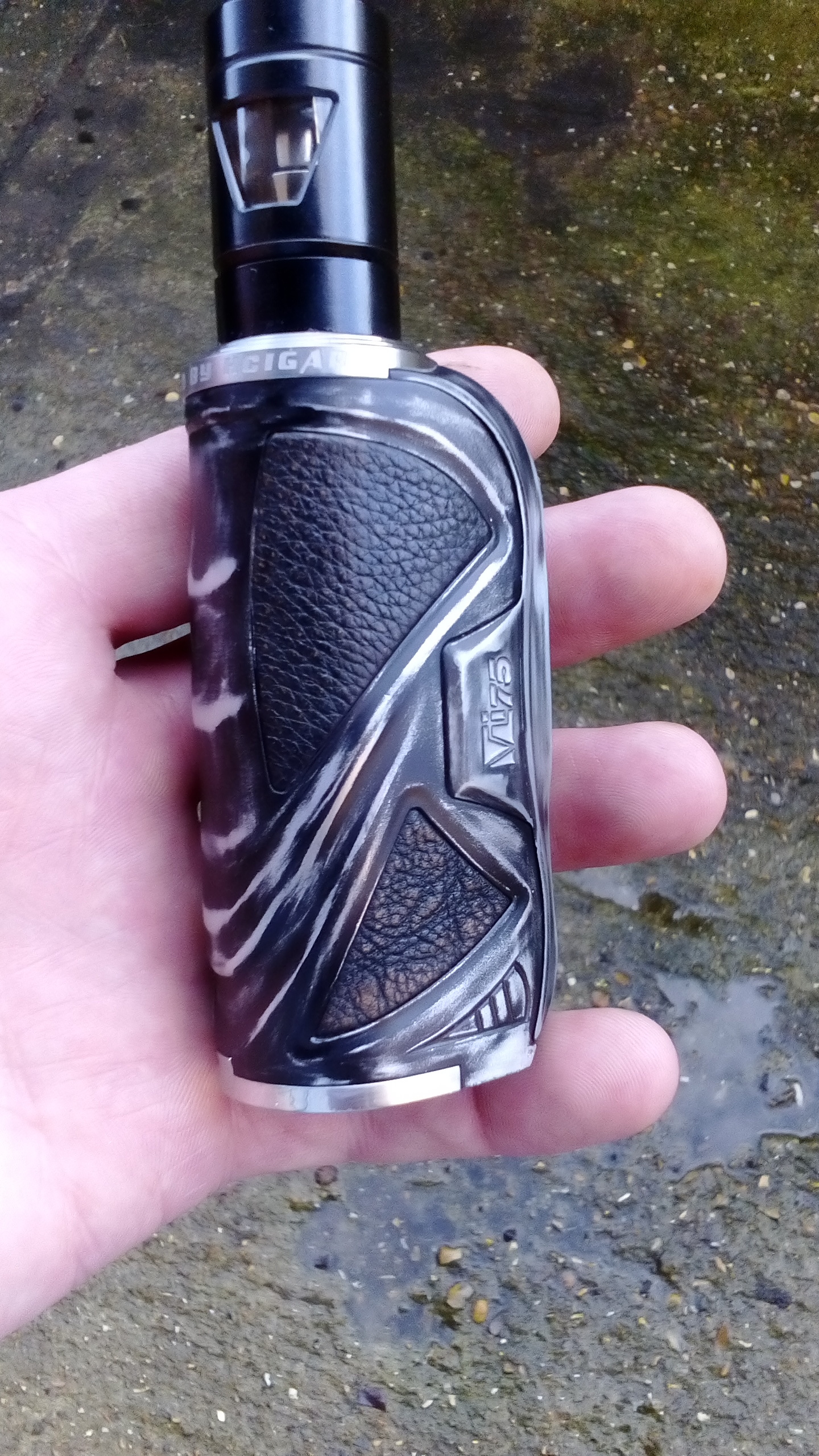 As above poor leather panels on the black, it gets warm if you chain vape, stock theme doesn't work no live data and dont over tighten the battery cap with a 26650 as it can short mine did.