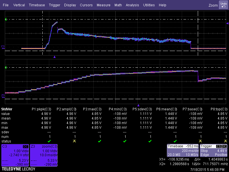 Gotcha... Would be nice to nail down an apples to apples acquisition protocol for the scope.... I only ticked voltage in DM.....would be nice to be able to see statistics for voltage over "last puff" params.... What I am trying to do is develop a relatively time correlated acquisition system, for DM vs external measurement.....we should be able to get relatively close granularity in the measurements, as the Atmel MCU on the dna200 (haven't bothered to put it under the microscope and read the PN) and the WRMXi (scope) are both roughly 12-bits of acquisition data (the LeCroy is running in eRES mode, which is 12 bit effective interpolation). The MCU is 10 bit a/d? (but i am assuming some interpolation is happening between the serial data stream and DM?) The most interesting thing I noticed was the difference in ramp-up in the curves....I am going to assume the softer knee in the scope waveform is due to the input capacitance of the scope.....the probe is only 1.8pF. EDIT : X Y parametric data would be very helpful in the DM graph....especially if it correlated to "industry standard' scope params (plus grid)....I.E. amplitude over time, with zoomable incremental steps.....I know you guys aren't trying to build a "scopeDuino" here, but it might be valuable for targeting inconsistencies in heating (due to load non-linearities). I've managed to get around the lack of a programmable hysteresis window, by moving TCR split points around a bit....not ideal but it works, when trying to "dance" around any consistent decreasing slopes.....obviously we are going to all run into the very real problem of the enclosure/board/signal path drifting (due to thermo-electric effects)