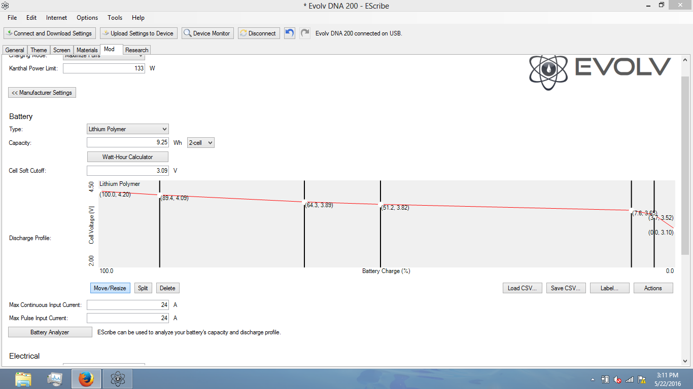 So last night randomly, my battery meter went down to 0 but the device was working perfectly. I charged my batteries (lg HE2's) using a Nitecore charger up to full. I put the batteries in the VT133 and i keep getting the error of Imbalanced Battery. I have taken a couple of screen shots from Escribe. Currently my mod shows 0 battery % but is still operational. Any help would be much appreciated