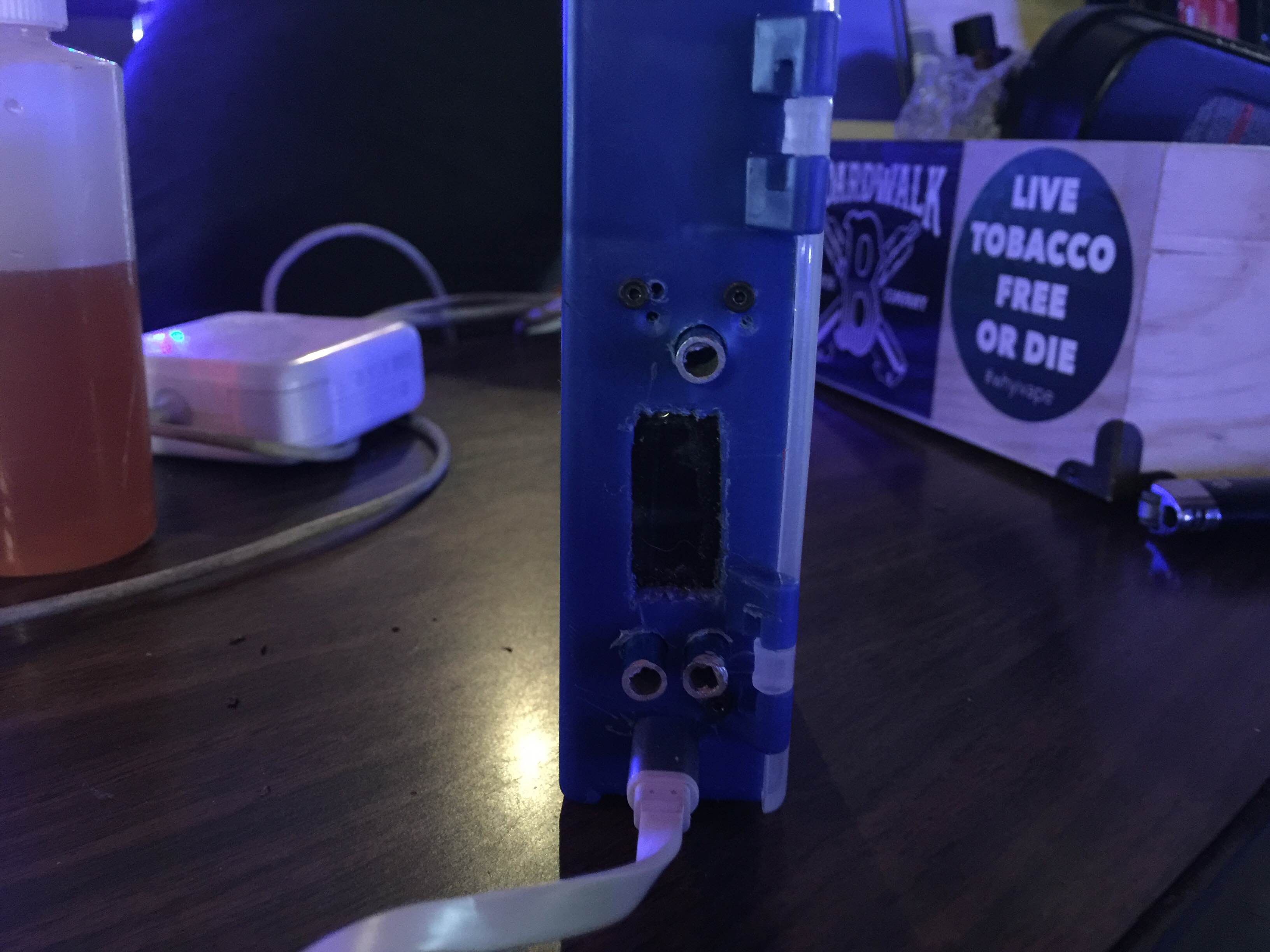 First and foremost this was my first regulated build and end up messing things up so I know that some will critique my cutting and drilling just know I don't care. I have a box lined up and one being 3D printed for it and I'm use to just doing unregulated boxes Ok so when I got my DNA 200 kit, I did not take in to consideration the actual size of the battery. Drilled the box out completely, Battery finally arrived and ended up not fitting the box no room for the 510 connector. I started scrambling around for what I had laying around in the process I ended up destroying the shelf pins for the switches, and the box was at a total loss. Speed forward to an hour or so after I've torn my hair out and hanging my head as a loss looked up at my dremel kit and saw the accessories box that has little items in it. Ended up cutting 2 walls out of it and part of the spine as you see in the pictures. Drilling went south and had to make shift new pins for it which I used knitting needles and some remains of the plastic I cut out. Every thing else went smooth and I have learned new and valuable lessons in building this. I've since called the the Battle Scar DNA 200 hope you enjoy the pictures as much as I really did building it.