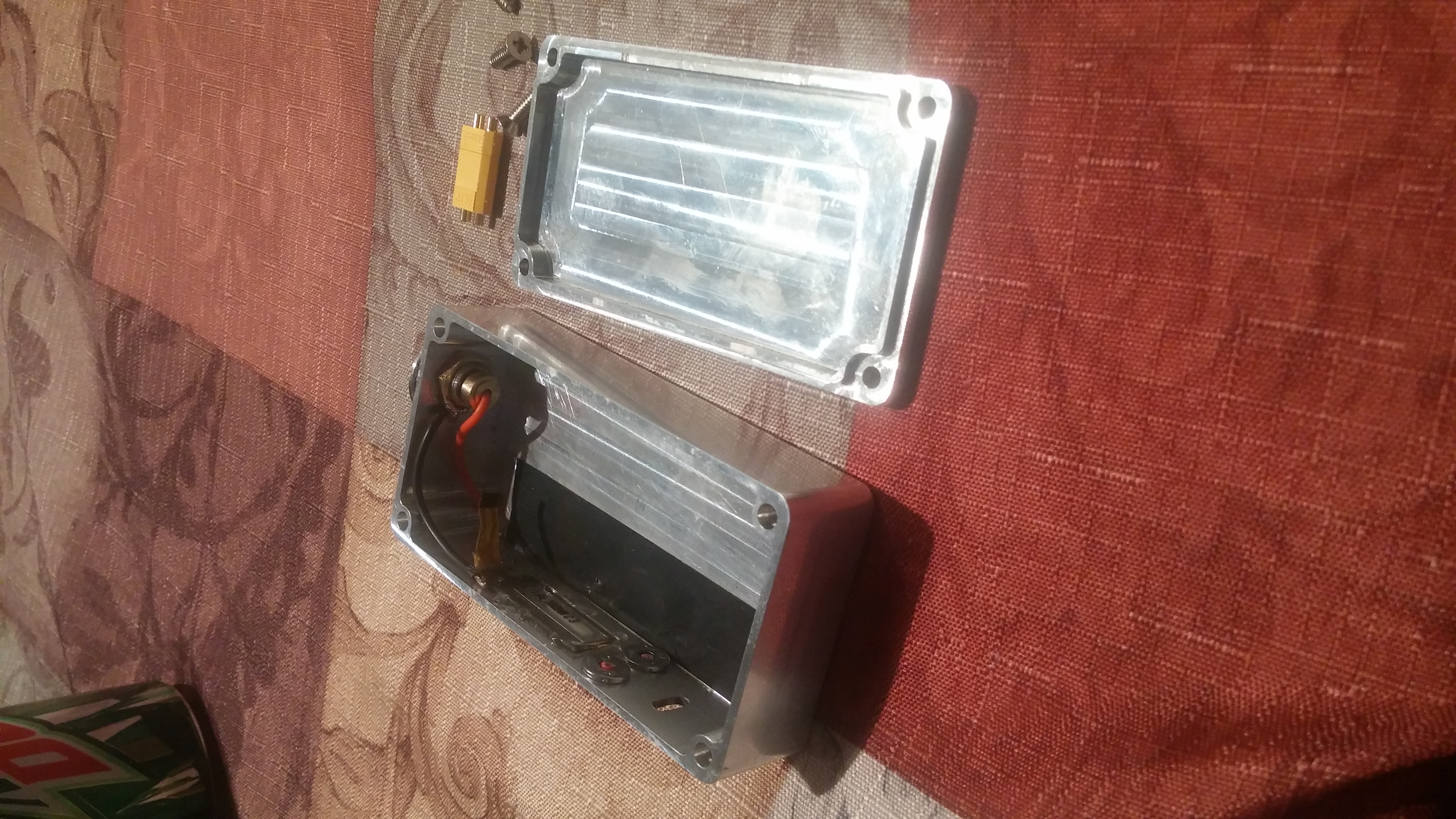 1 of my project boxes same box macz linked, just a little bigger than a 1590g box button hole drilled out with 1/4" drill bit square hole used a dremel.