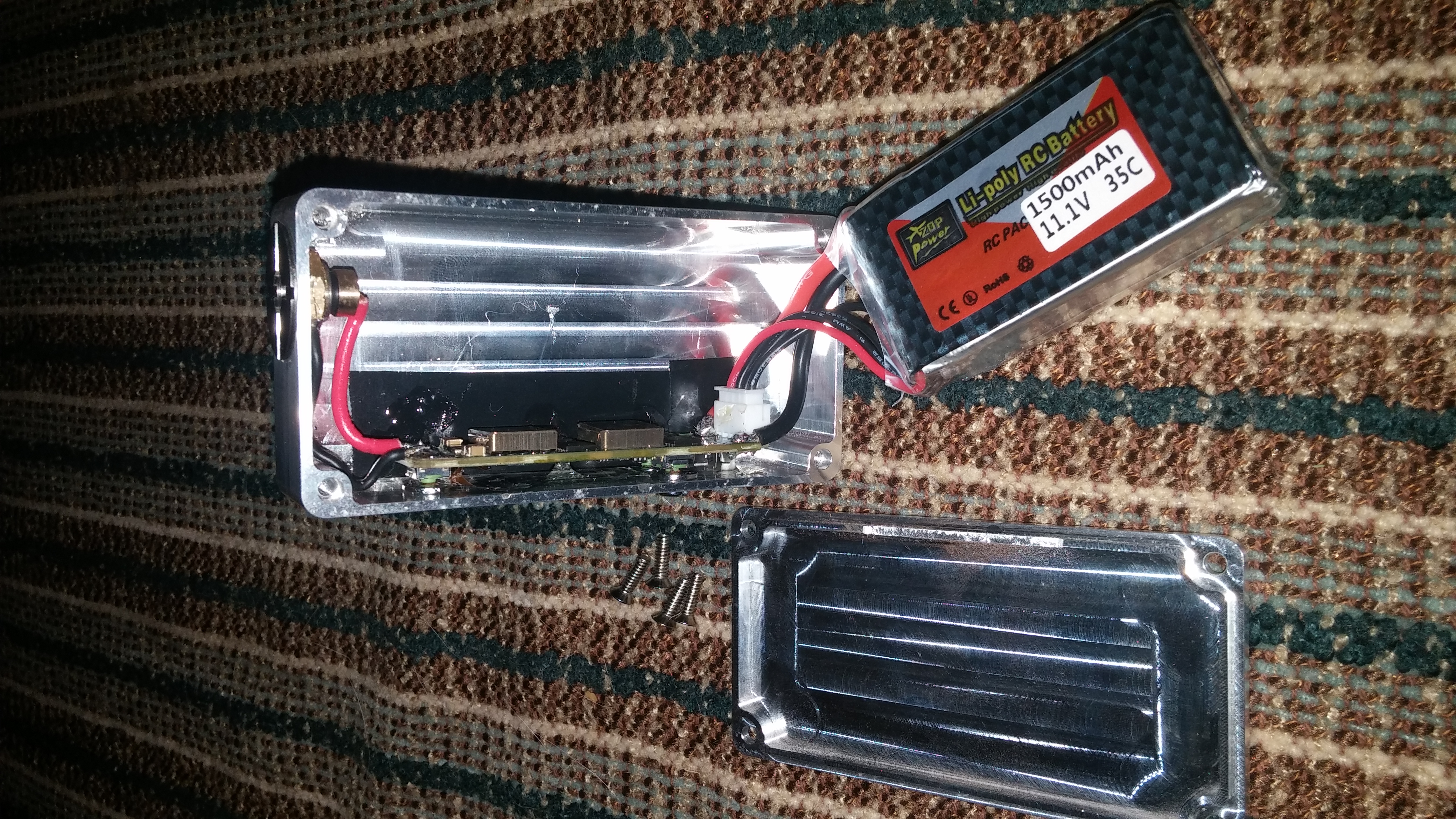 Yeah I'm not sure but it is a 11.1V 3s 35c wired directly to the board with balance connector plugged in. If you need me to wire it back up I will, sorry I should have taken a screen shot with it plugged up though eScribe, here is some pictures. I resoldered the joints to the tap just now and plugged it up to eScribe here is a picture.