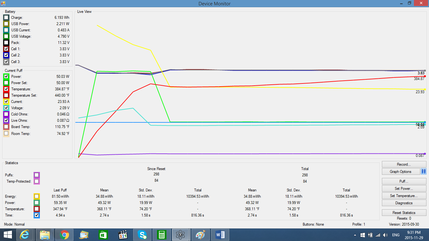 Hi, i just got a lava box on friday (black friday) and no, no correlation between sales and the box, just coincidence. I am having troubles with a bug that i have not been able to find through the search function which isnt actually why im writing this post. Which has to do with the chip not sensing tc coils and having to go through a series of steps to get it reading and working right. The problem I am posting about now is when i get past that bug which im hoping is fixed in an update sometime soon. When i get past the bug and i am connected to escribe i have my temp set to 440 with a preheat of 100w 1s 9punch, i then open the device monitor. when i take a pull the temp jumps to ~330 and creeps up slowly from there, and the temperature set is still 440. the weird part though is that it feels too hot for 440. If i reset temp to 400 it does the same thing on the graph and settles at ~330 but the temp feels different from when it was set to 440, but depending on if i set and reset the temp it hits hotter or warmer, never constant yet its always settling at 330. so tl;dr no matter the temp im setting, the live temp on escribe settles at ~330 and graph still acts as if its reading and performing right if temp was set to 330. Yet temp does not feel correct to what is actually set and isnt constant (hotter/colder if i switch between temps)