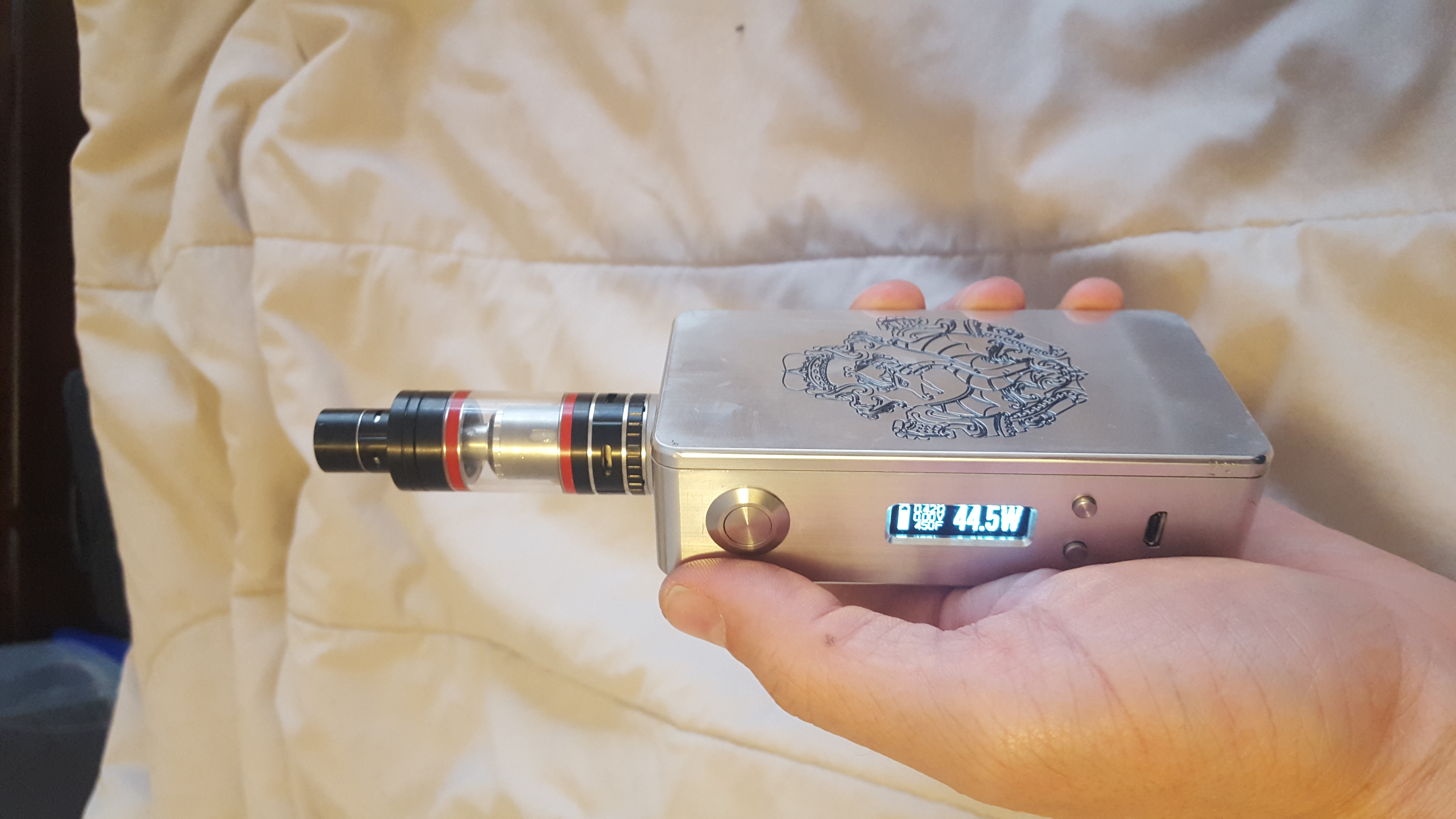So here it is guys (and girls). My first attempt at building a MOD. Parts: Evolv DNA200 Board and screen ZIPPY Compact 1300mAh 3s 40c Lipo Pack Modsledz DNA200 Board Holder V1 VT-B510 Varitube 510 Connector PS-MSW1201-Mitec 12mm Momentary Push Button Switch Flat Top SparkFun Max Power IR LED Kit - Converted to run a LED Instead on an acrylic ring.