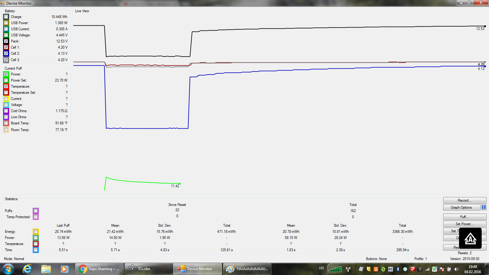 They are reading 4.20V, 4.20V, 4.20V!!!!!!!! One problem is still i cant run battery analizer it says waiting to bee fully charged. I am afraid to take it off the chord now i will leave it like this until someone replay. Thank you all for great help