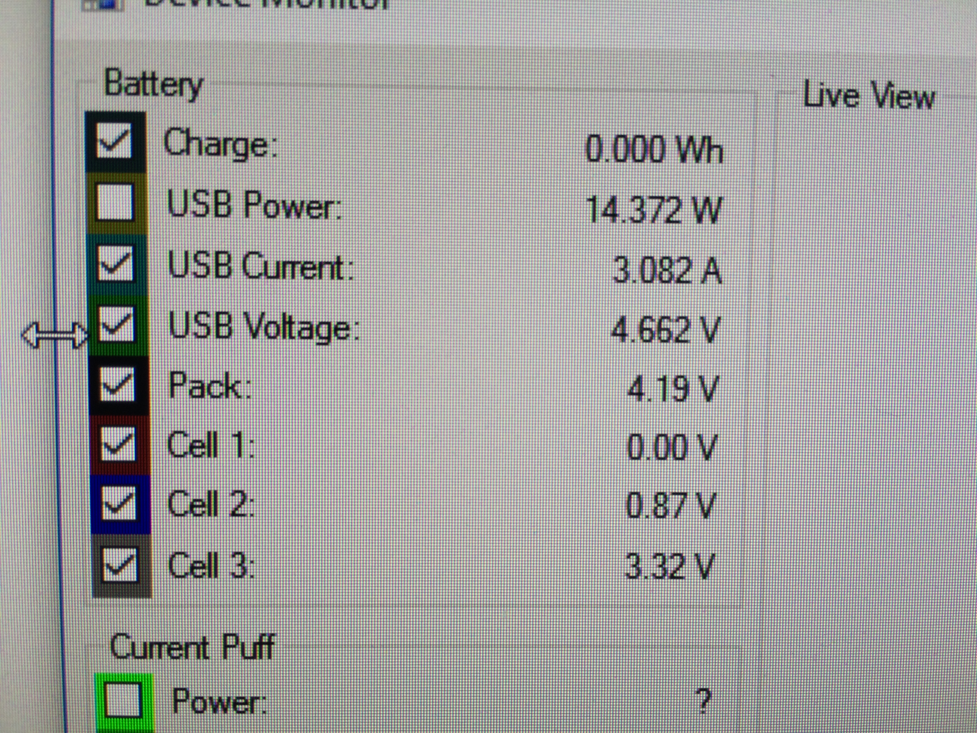 Finally got my dna200 board in yesterday. Soldered a brand new lipo pack (turnigy 3S 1500mah) on it. Loaded up escribe and connected... everything was ok! cell voltages all the same 3.84v today i grabbed my little project. my screen wouldn't light up any more (just for a few tenths of a second. Loaded up escribe again. The voltages are either zero or are dancing around. The screen doens't sy imbalanced battery or whatsoever. Since standard practice is to send some data here it is (including video)... [video]https://youtu.be/wU1Qgf_-WWA[/video]