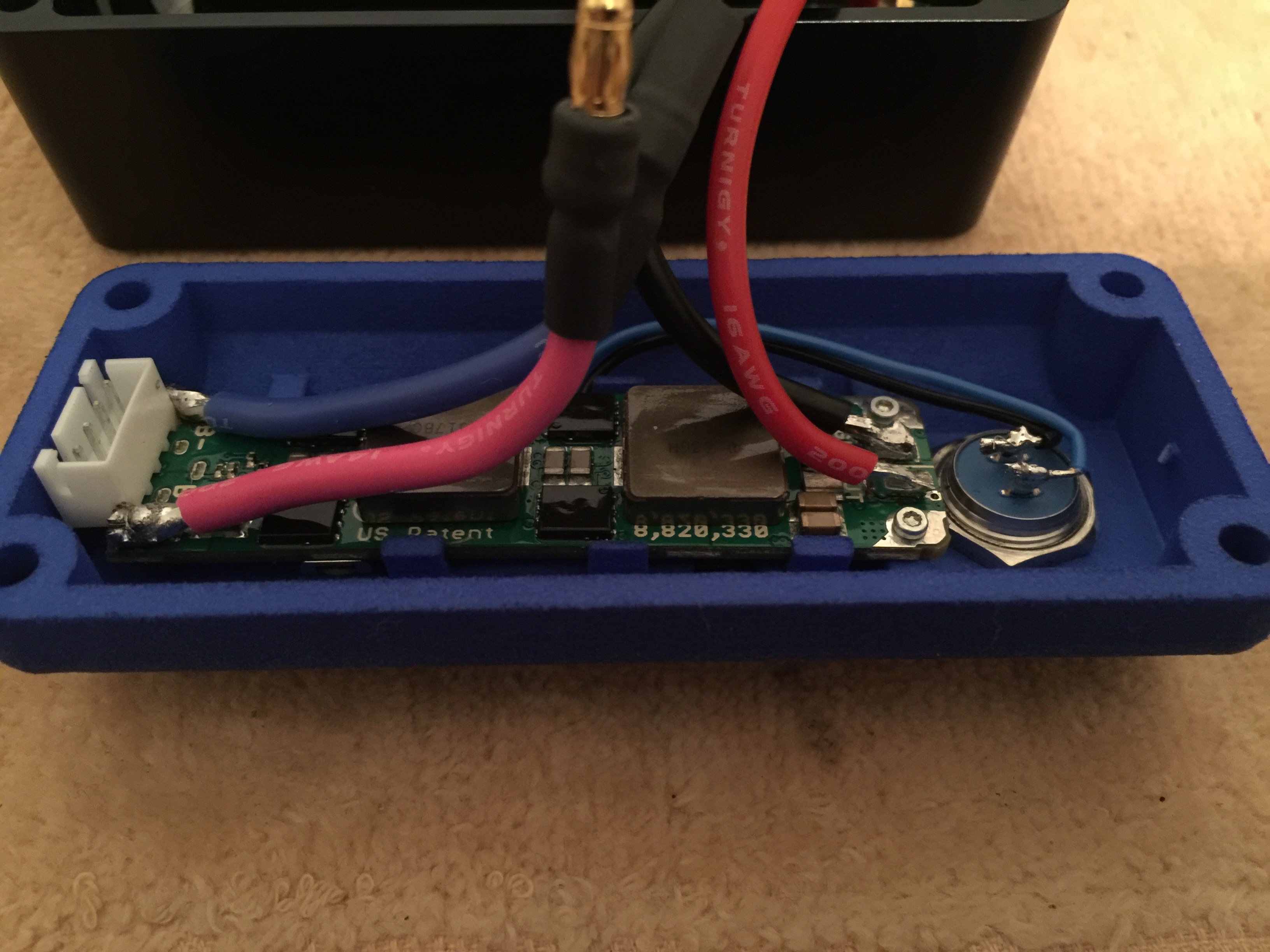 Same goes for the battery to board joints, they allowed me to loop them over and connect to the bullet connectors on the battery and be tucked down beside the battery in the box.