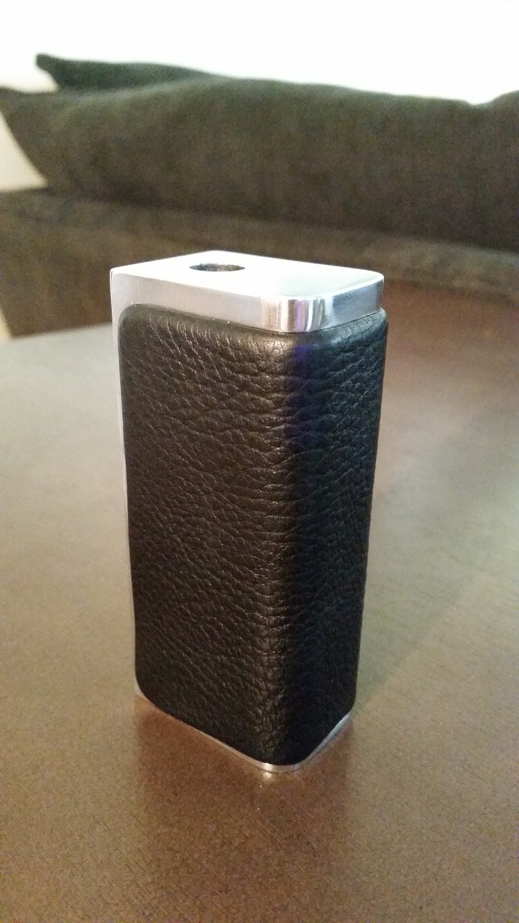 I got a chance to mill out the window for the display using a 3/32" end mill. The screen is registered in place much like the Evolv reference case was. I also decided to wrap the carbon fiber sleeve with leather. It feels nice in the hand, I like the look, and it smells like leather to boot! I'll cut out another carbon sleeve when I get a chance, so i'll be able to change the look if I want. Also the polished aluminum looks great but scratches way to easy. Still going to get it anodized, maybe silver. Thoughts? Should have it working sometime this week.