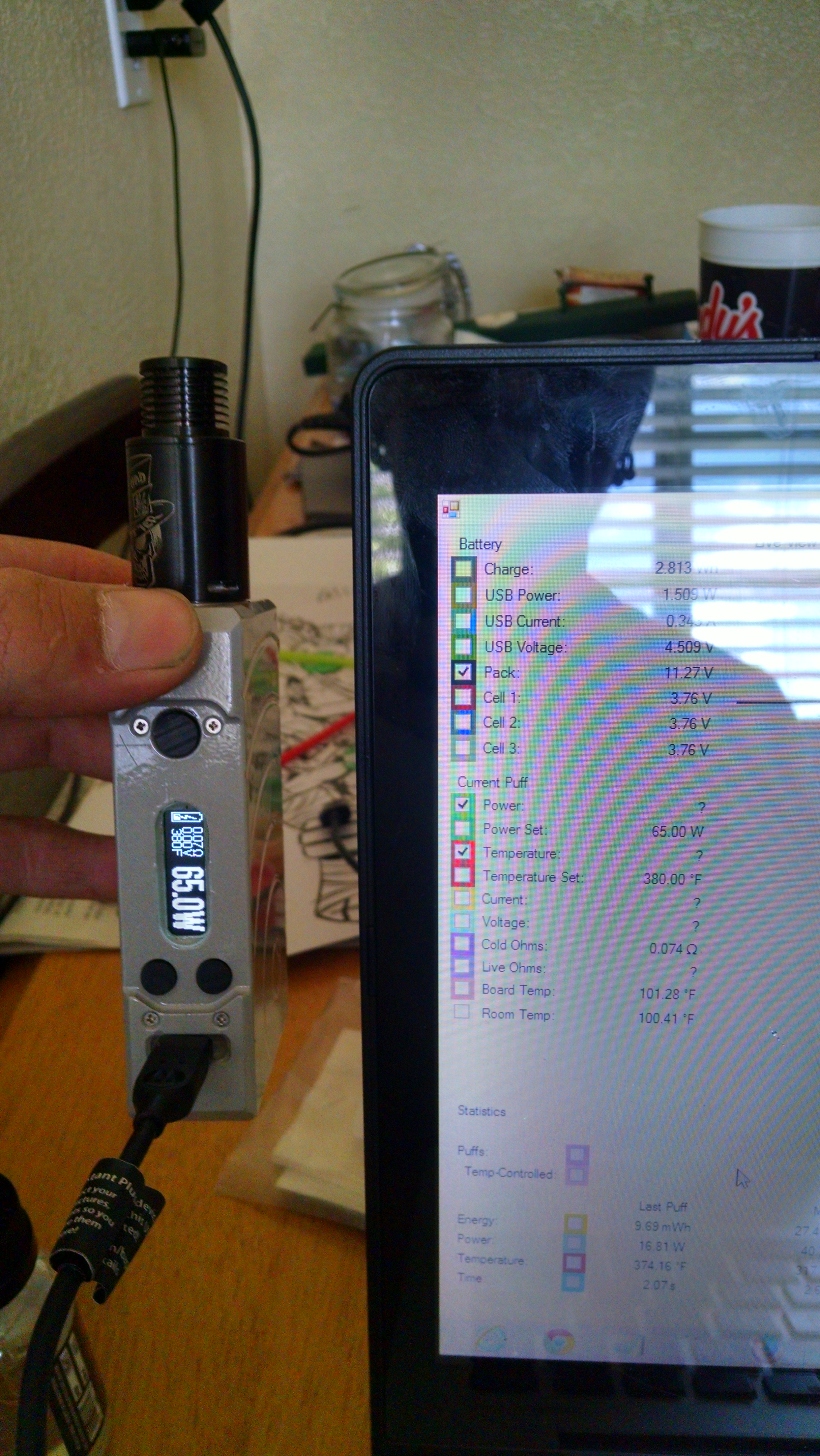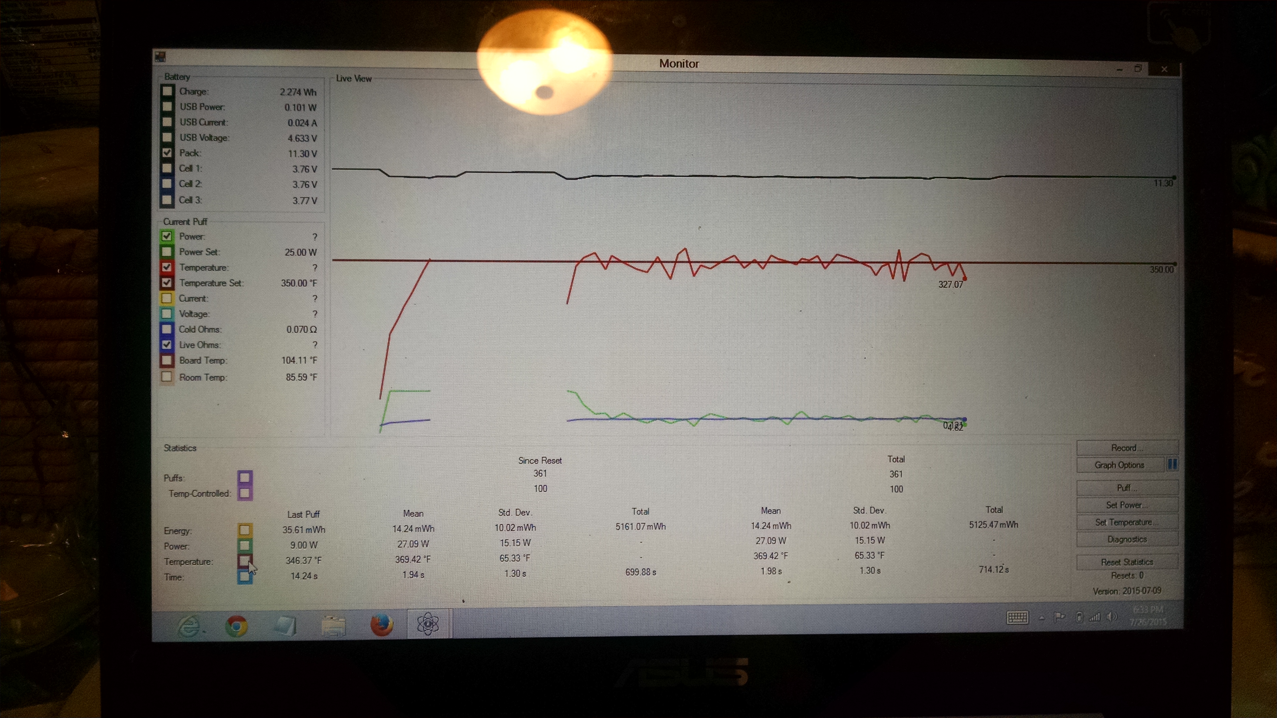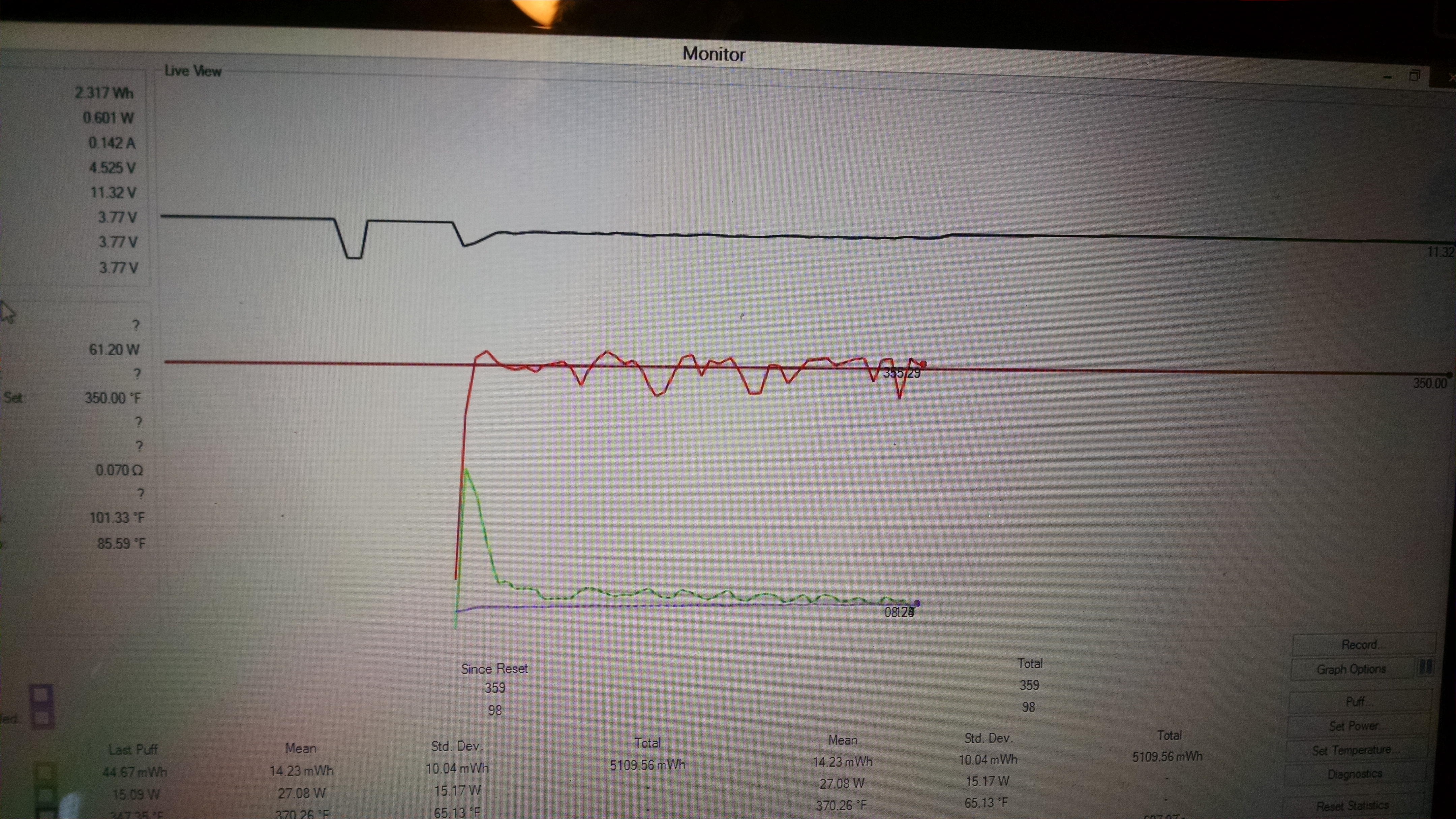 Bottom is live ohms middle is temp and top current ... Looks all screwed up to me