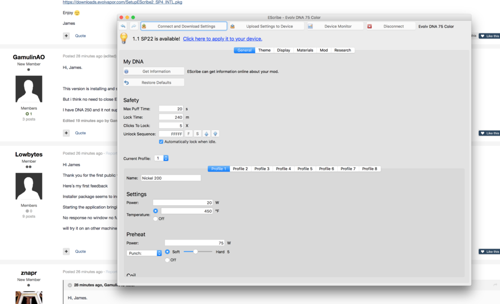 If it's hidden there must be a reason especially so early on in the release of the feature. Completely agree on the second point. DNA devices have by far the best TC but it never caught on because of 2 main issues: bad 510 connections and sketchy atomiser design that results in unstable resistance. I've been complaining for ages and have written to various people such as pbusardo to convince them to stress the importance of these 2 factors in the reliability of TC but nothing has come out of it. I haven't tried the Evolv 510 but I'm using the Source 510 in all of my 3D printed mods, which is derived from Evolvs design. It is by far the most reliable spring-loaded 510 I have ever used and results in excellent TC. The most reliable is obviously the old 510 non adjustable (or non spring loaded) 510s from my GG mods. I understand the convenience of a spring loaded connection but has just led to massive inconsistency issues because of flawed and cheap designs and is the main contributing factor to almost noone using TC. Sorry of the rant but I'm quite passionate about this topic and looking back maybe I could have done more but we we're here now.