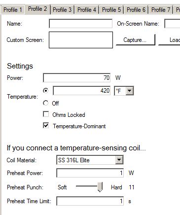 Trying to set up temp control on my Paranormal 166. Currently running SS316L dual triple core 30/38 claptons ohming out at 0.25 ohms. For some reason the measured real-time temp doesnt ever reach set temp. For example I set it to 400 degrees it only goes up to 300. This is at all wattages. But it feels hotter than 300. I can move the temp higher and it doesnt do anything. I can move it lower and it wont do anything until it reaches the temp its reading real-time. Do I have some settings messed up somewhere? See photos.