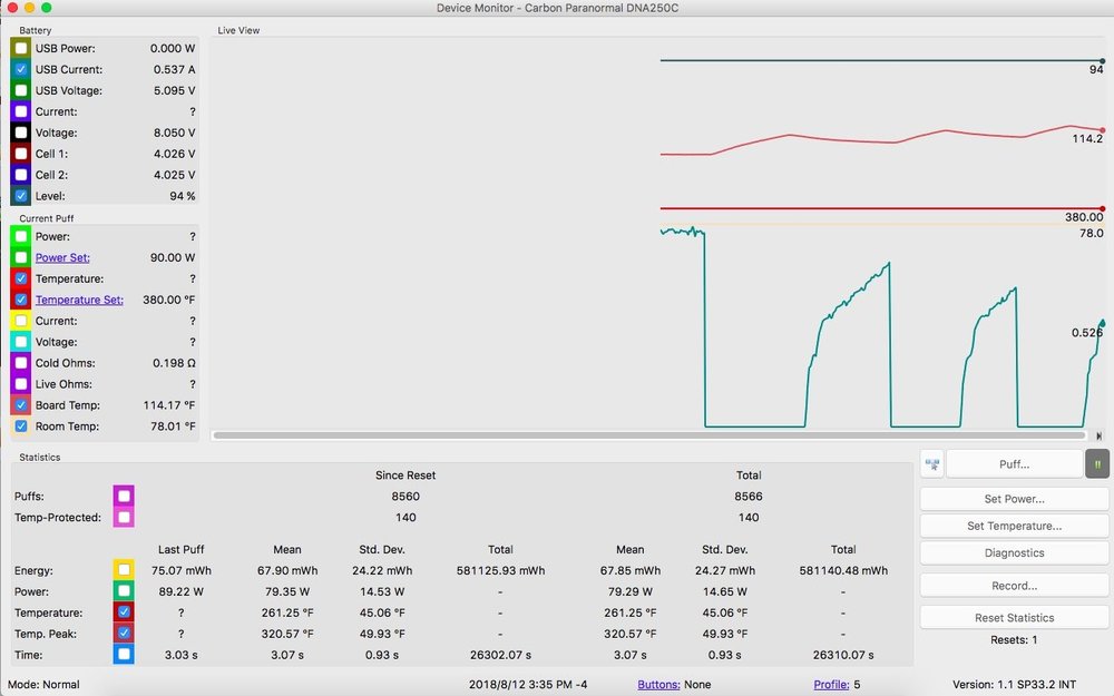 I'm getting No Temperature Reading on a Peranormal 250C. Tried restoring defaults. I'm using 316L with this file ~SS316L~.csv . Any thoughts? Here's Device Monitor showing 3 puffs