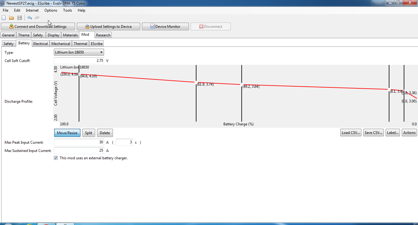 Mine came factory at 0.01 internal ohms and read high, After test with copper plug it read 0.015 which is very small. But the ohm have been straight on the money. I'm using EScribe Version 2.0 SP12 International. So my Therion DNA75C is at firmware 1.1 SP27. Use same Escribe for my Therion DNA166 boxes. But DNA boxes are used maybe 6x a year. I have over 100 mods as i'm a collector so none get beat to n sh*t. I switch mods every 2 weeks and run 6 at a time for 6 flavors.