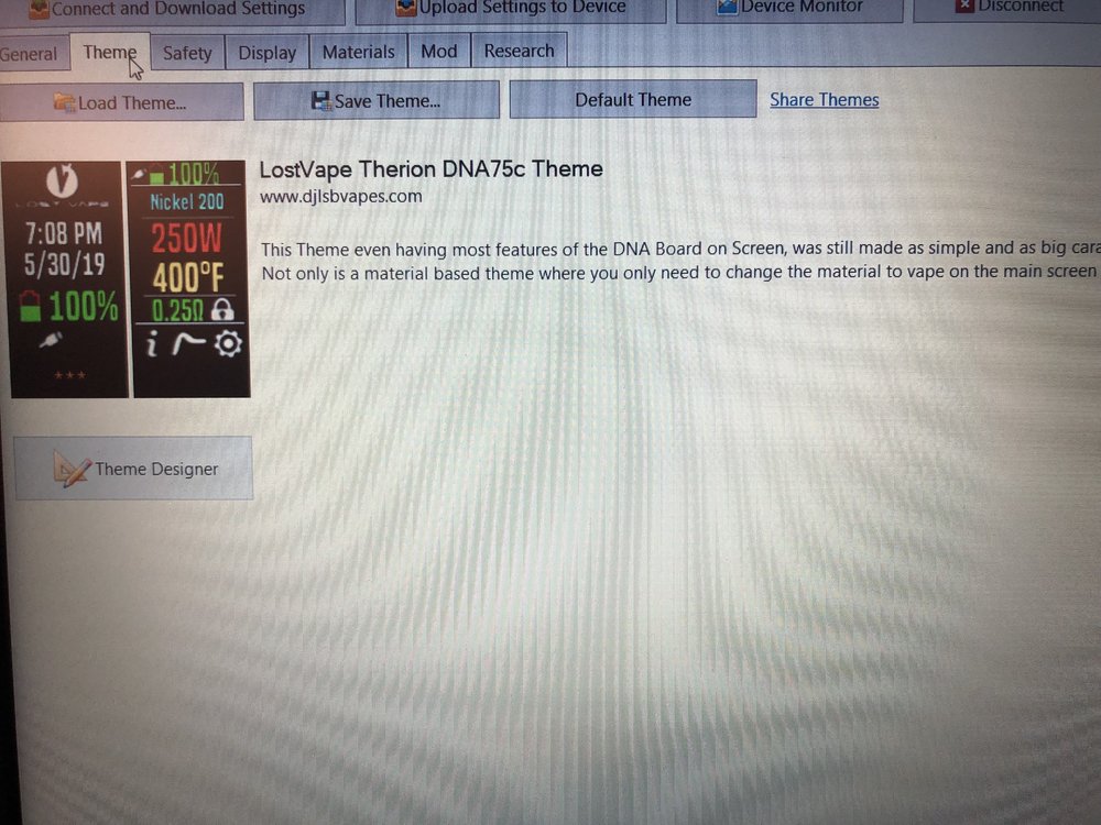 I followed you instructions and saved the Theme file. I’ve tried several atties using the Enhanced DNA theme but it didn’t offer to Save Puff. I decided to try a different theme and now uploaded the Generic DNA 75C with Replay Mode theme and it’s now offering to Save Puff. For some reason it’s Saving but it didn’t previously. Oh & ONLY use ss316 or ss 430 Update- so now I have the Generic theme on one of my Mirages with Replay working as it should I’m afraid to make any changes in the Settings now!! So my next question is - will uploading this current theme be as “difficult” to figure out for my other 2 Mirages and 2 Thors. I’m not exactly sure what we did to get it working properly as you can tell I’m not exactly tech savvy. Ill upload this same theme on the other mods tomorrow. One last question- can I hide/delete some of the 8 profiles that I will never use like Ti 1 or do they need to be included on the device? Seems to be awfully complicated for a device whose packaging stated Puff Replay on the front of the box. Maybe LV was going upgrade the s/w themselves or something. Thanks again for your help. Sara -