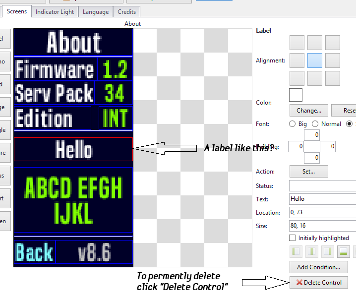 By default labels have to have text. If the text is deleted it will be restored when closing the theme. The default is "Hello". To get rid of the text completely delete the control (label). Is this example what you are talking about? JT -